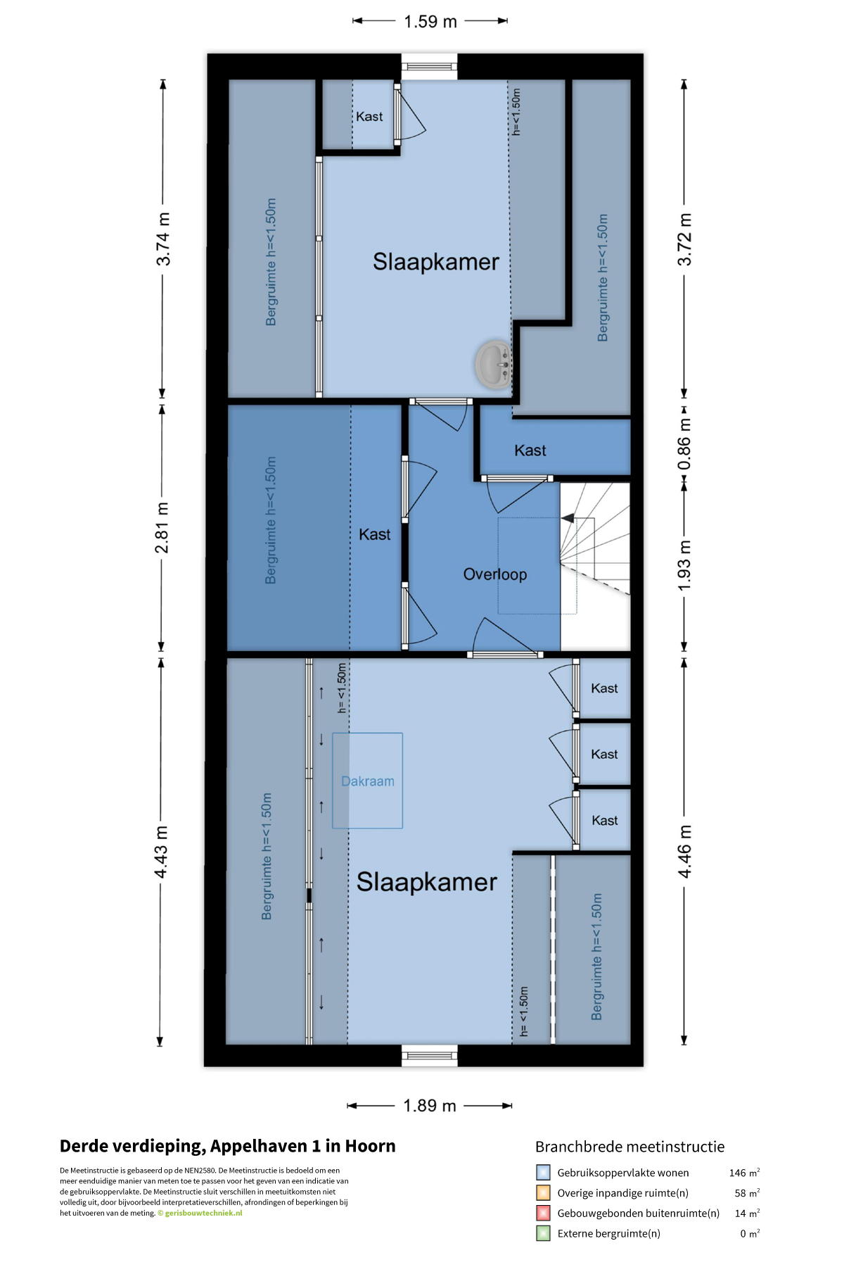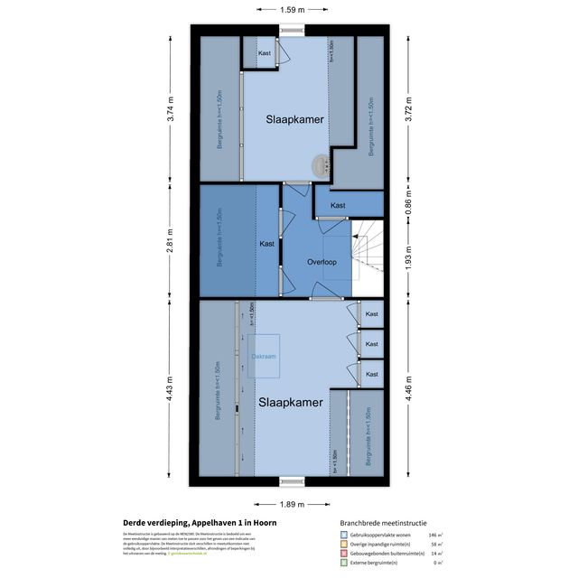 Op de derde verdieping bevinden zich nogmaals twee slaapkamers, wat het totaal aantal slaapkamers op vier brengt. Alle slaapkamers zijn twee jaar geleden nieuw gestoffeerd.