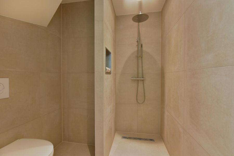 - Toilet, wastafelmeubel, inloopdouche, vloerverwarming en wasmachineaansluiting