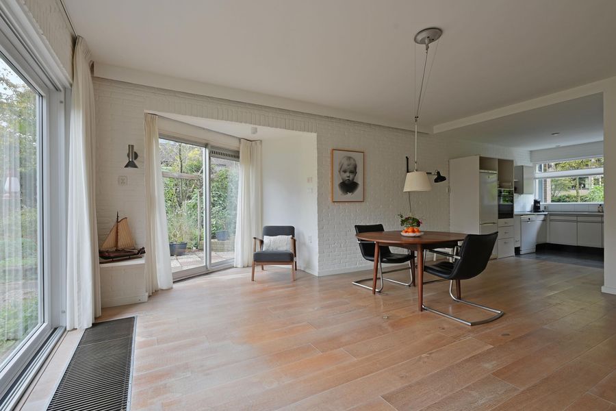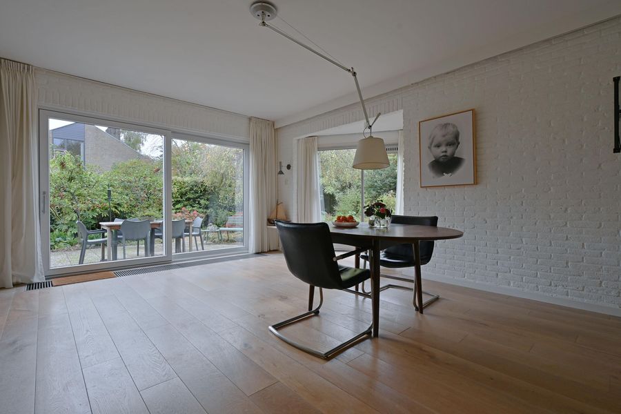 - Lichte en ruime woonkamer met twee schuifpuien naar de tuin;