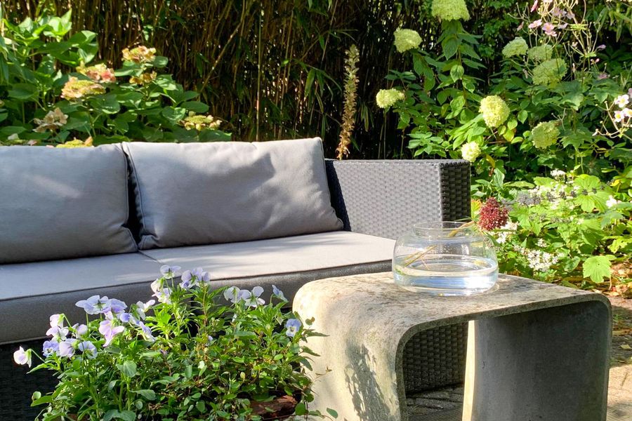 De tuin zetten we graag even in het zonnetje! Een heerlijke plek met fijne terrassen, borders, veel groen en volop zon dankzij de zuidwestligging. Je hebt hier de hele dag door zon, met in de avond een prachtige lichtval. De tuin is zowel sfeervol als praktisch ingericht en vormt een verlengstuk van de woonkamer.