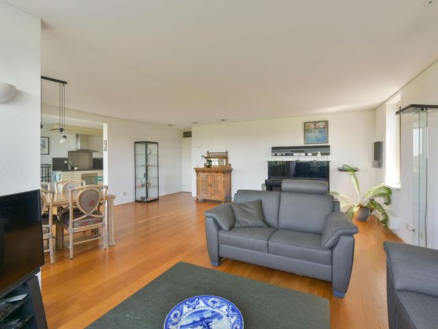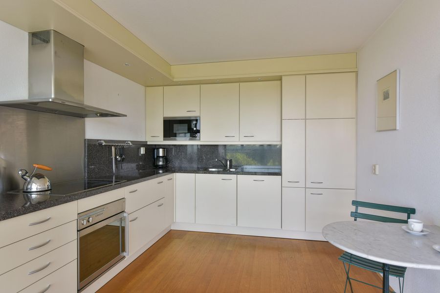 De indeling is praktisch en comfortabel. De loggia aan de woonkamer is een echte eyecatcher: het bovenste raamgedeelte kan open, waardoor je hier het hele jaar door kunt genieten van het uitzicht op de omgeving. De keuken is strak en klaar voor dagelijks gebruik én gezellige kookmomenten.
