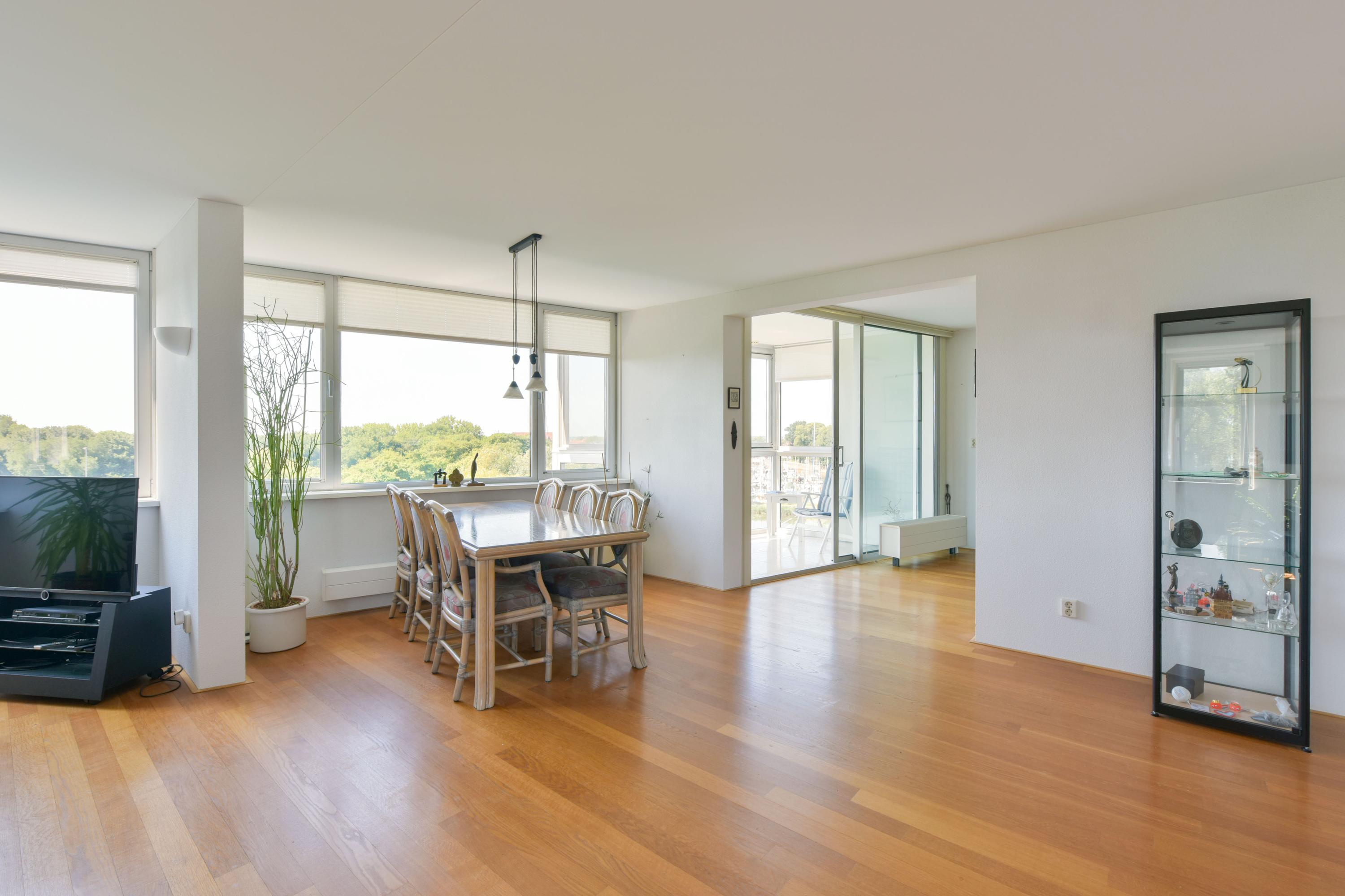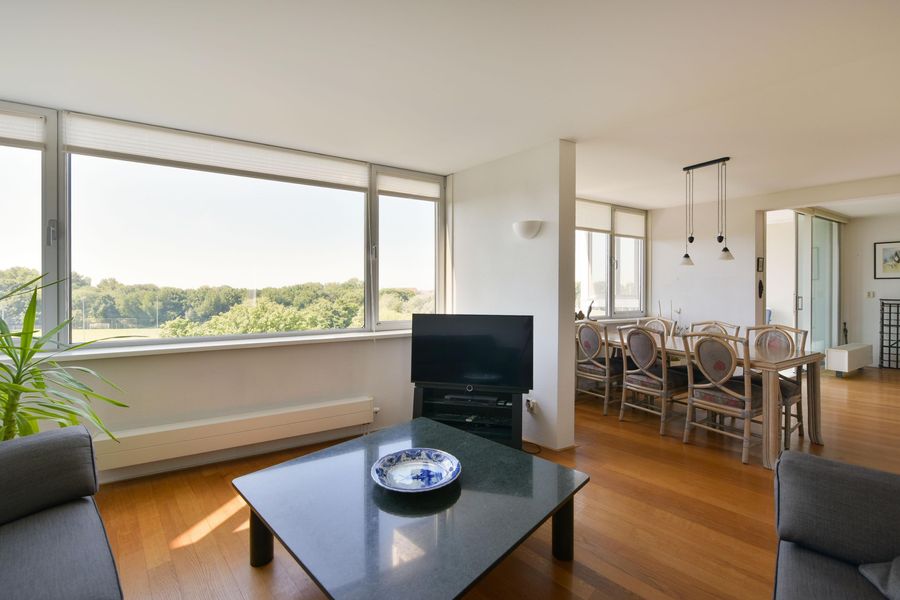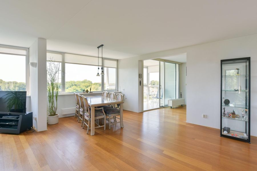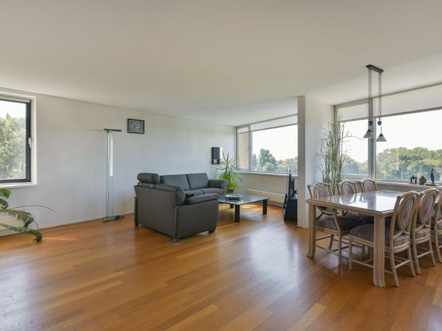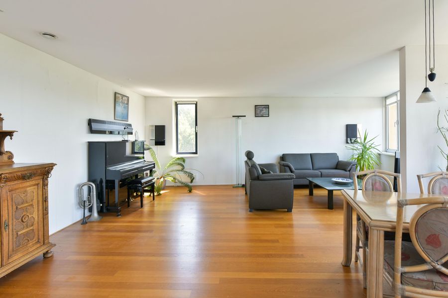- Ruime, lichte woonkamer met een warme parketvloer;