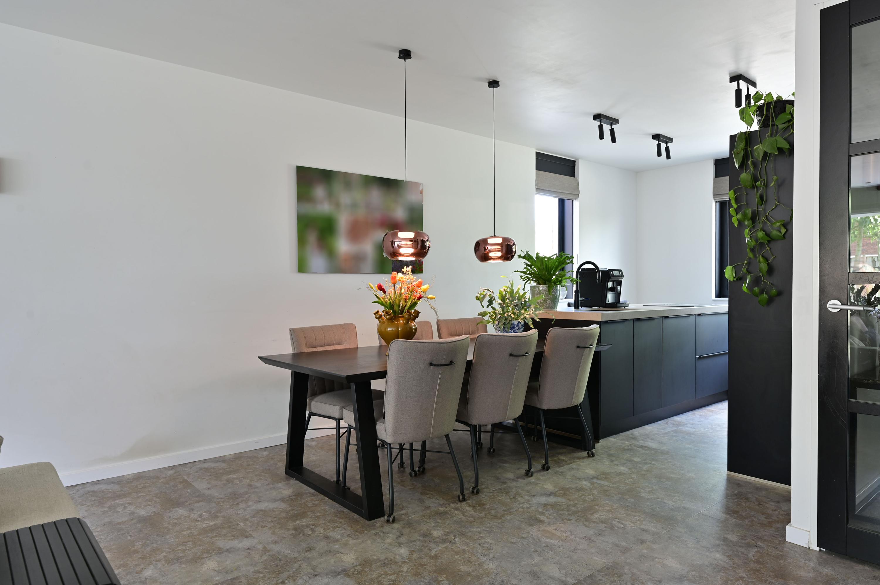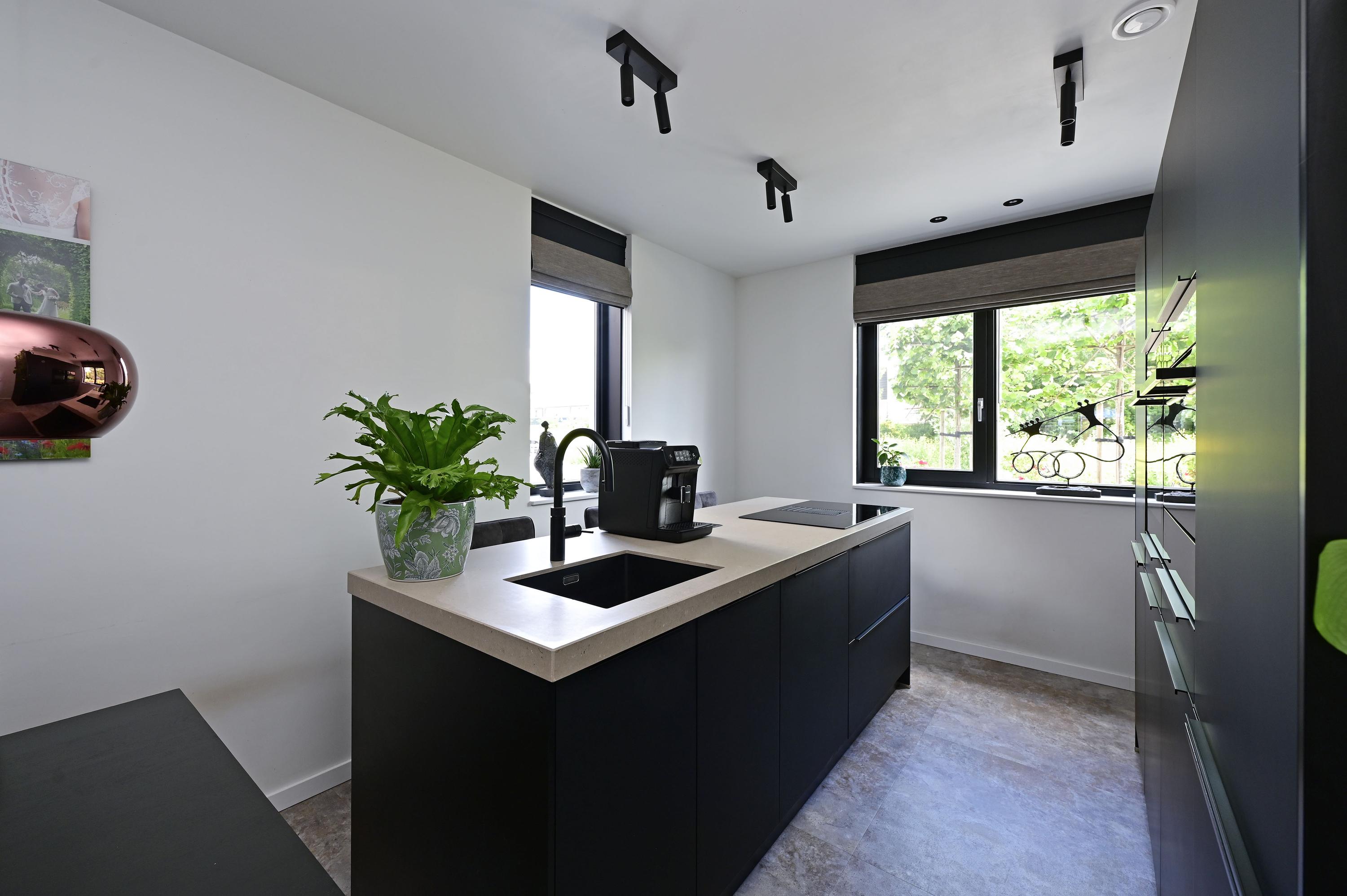 De keuken is een absolute eyecatcher. Modern, stijlvol zwart en van alle gemakken voorzien. Met een inductiekookplaat met ingebouwde afzuiger, een stoomoven én combi-oven, koel-vriescombi, quooker en een gezellige bar is dit dé plek om te koken, borrelen of je dag rustig te starten. Alles klopt hier, van de opstelling tot de afwerking.