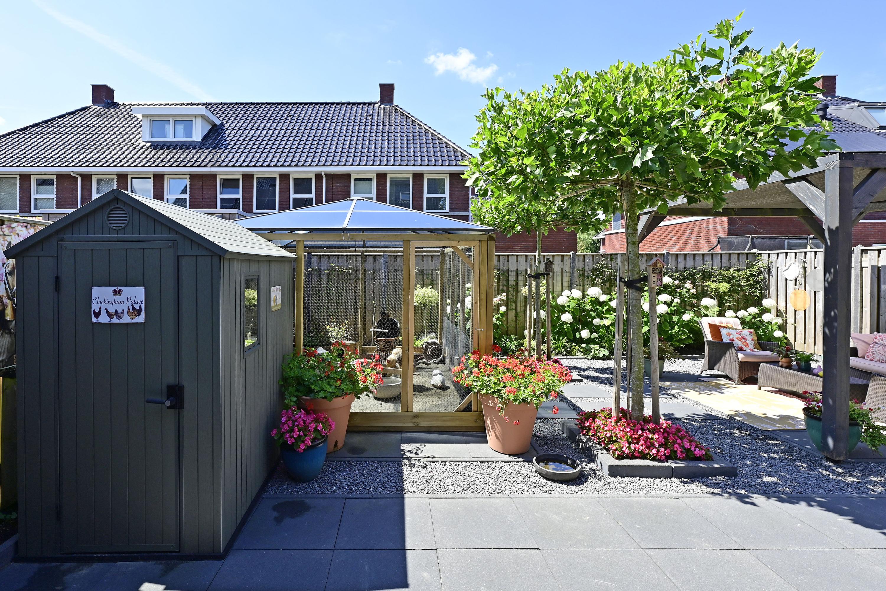 - Tuin op zuidwest met een riant kippenhok (staat los en is evt ter overname), een overkapping, openslaande deuren en