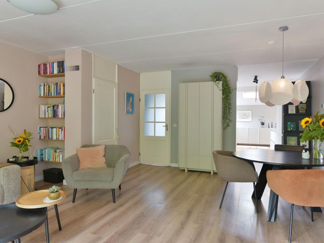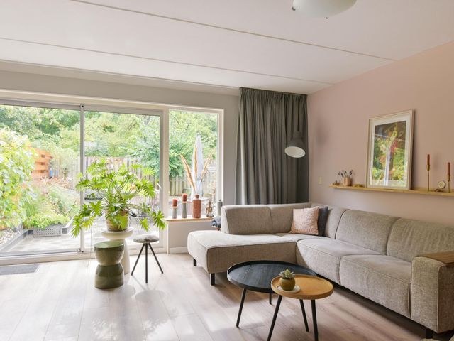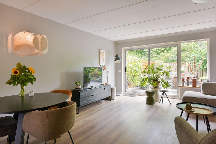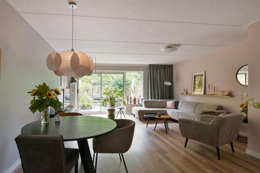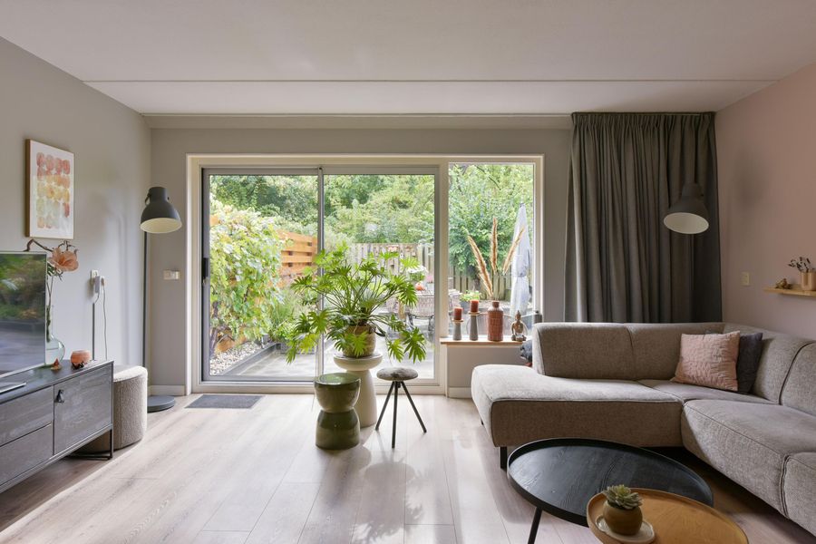 - Riante woonkamer met schuifpui naar de tuin en veel lichtinval;