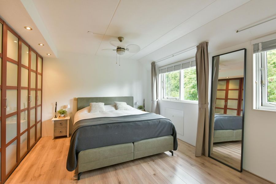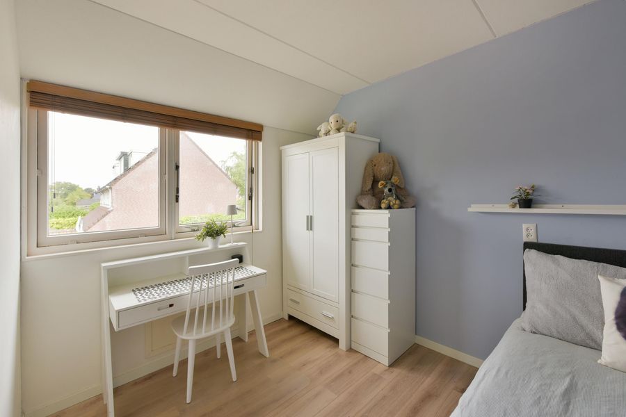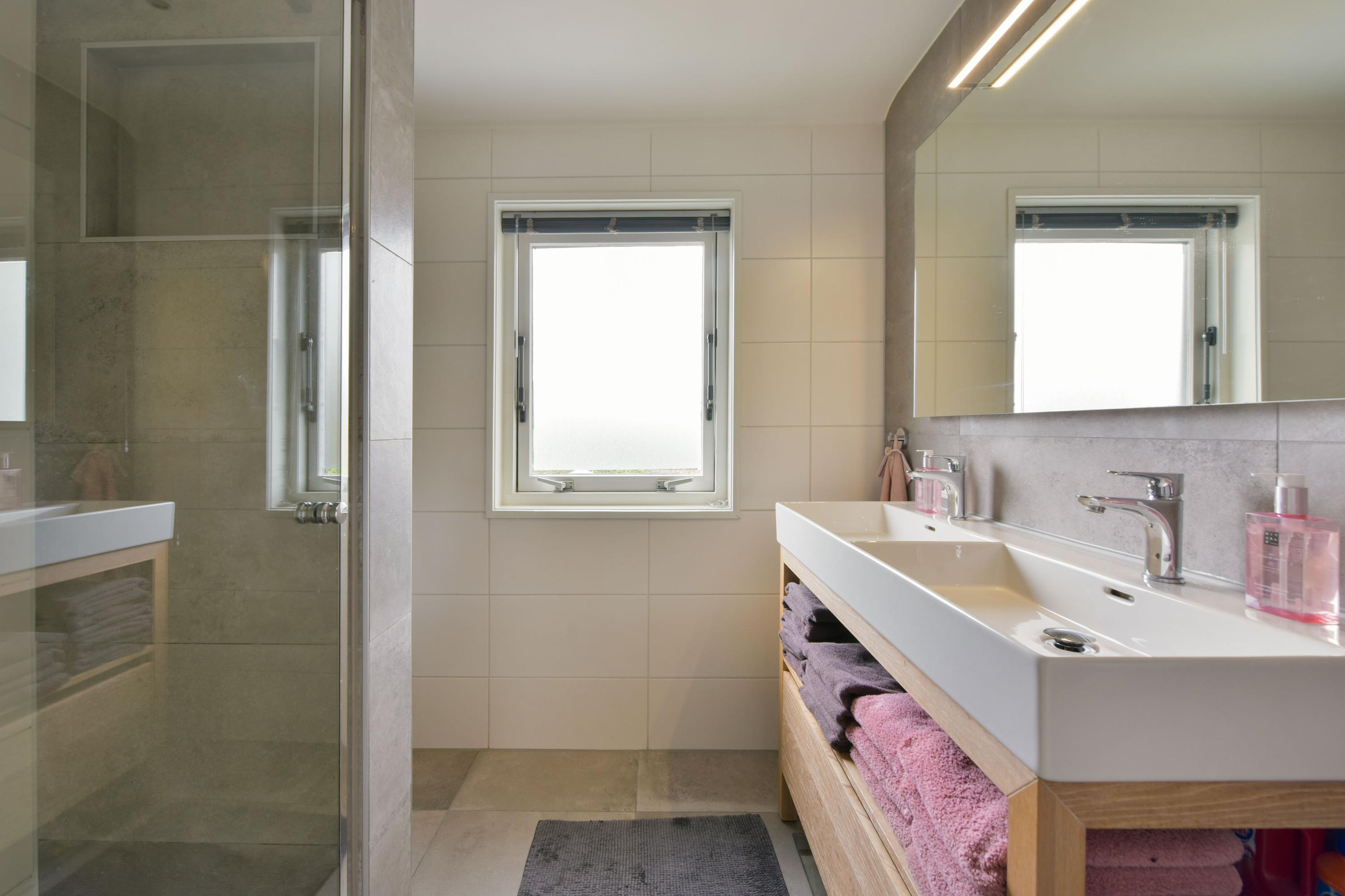 Op de eerste verdieping vind je drie slaapkamers. Er bevindt zich een slaapkamer aan de voorzijde en een ruime slaapkamer aan de achterzijde over de volledige breedte van het huis – extra royaal dus! De derde kamer ligt boven de garage en is perfect als kinderkamer of thuiswerkplek. Op de eerste verdieping bevindt zich een mooie doorlopende laminaatvloer.