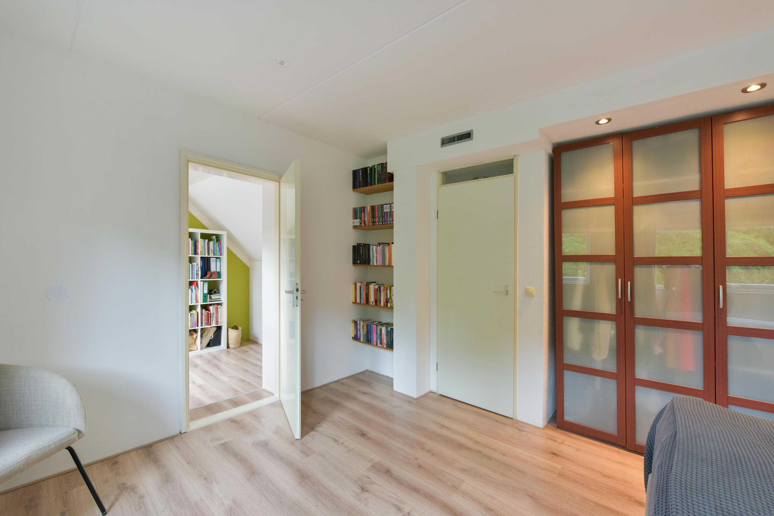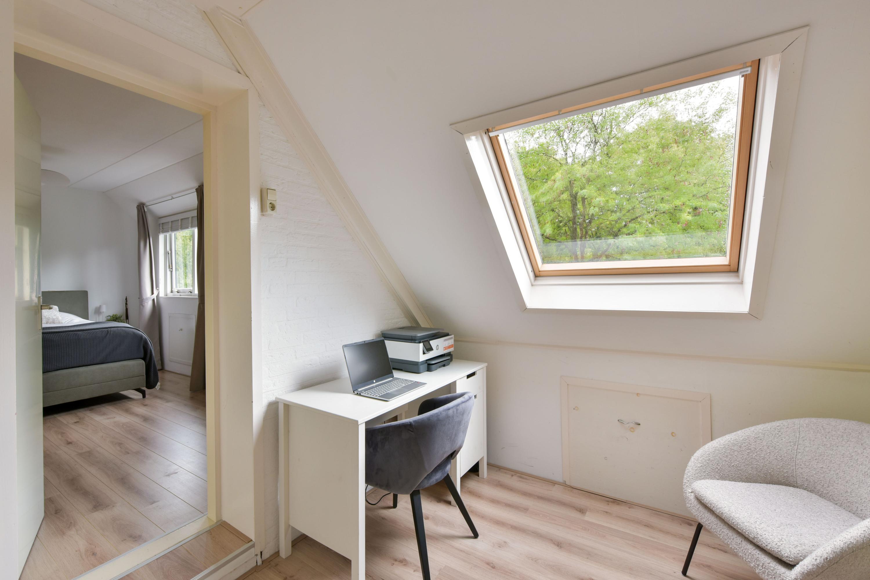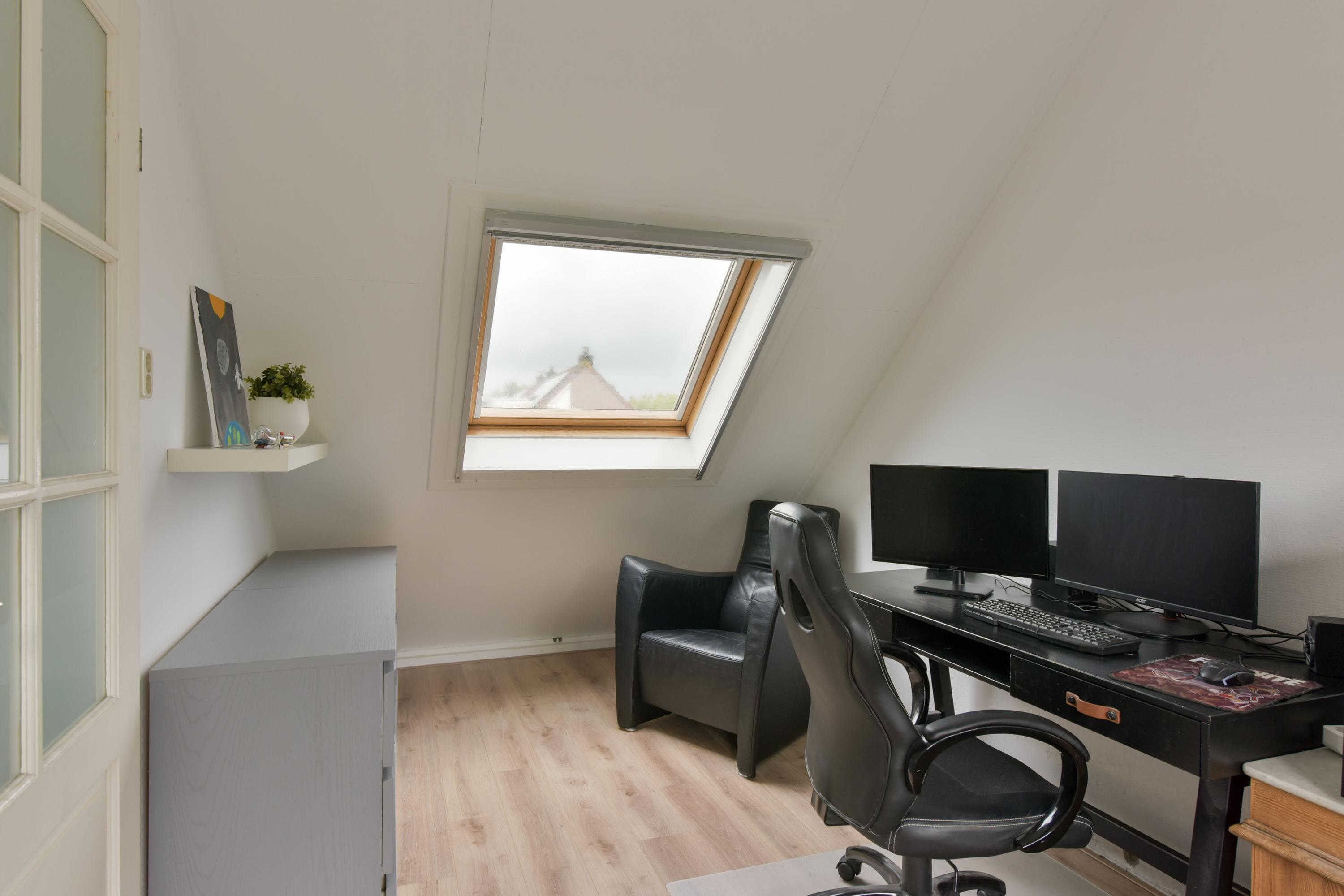 Op zolder is een ruime vierde slaapkamer gecreëerd met dakkapel. De overloop biedt plek aan de wasmachine, droger en hetelucht-cv-installatie. Net als op de eerste verdieping is ook hier een mooie doorlopende laminaatvloer aanwezig.