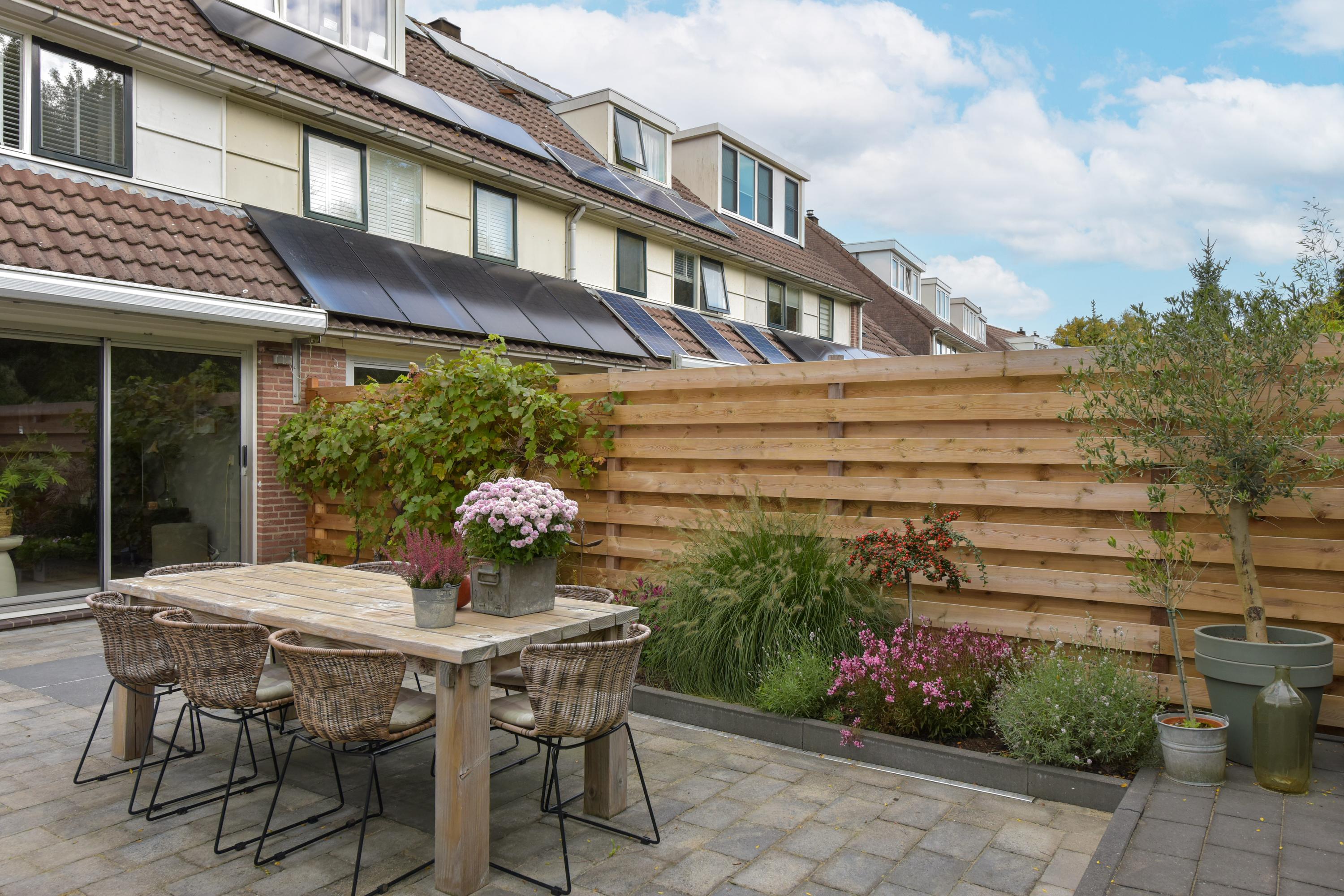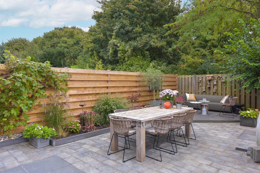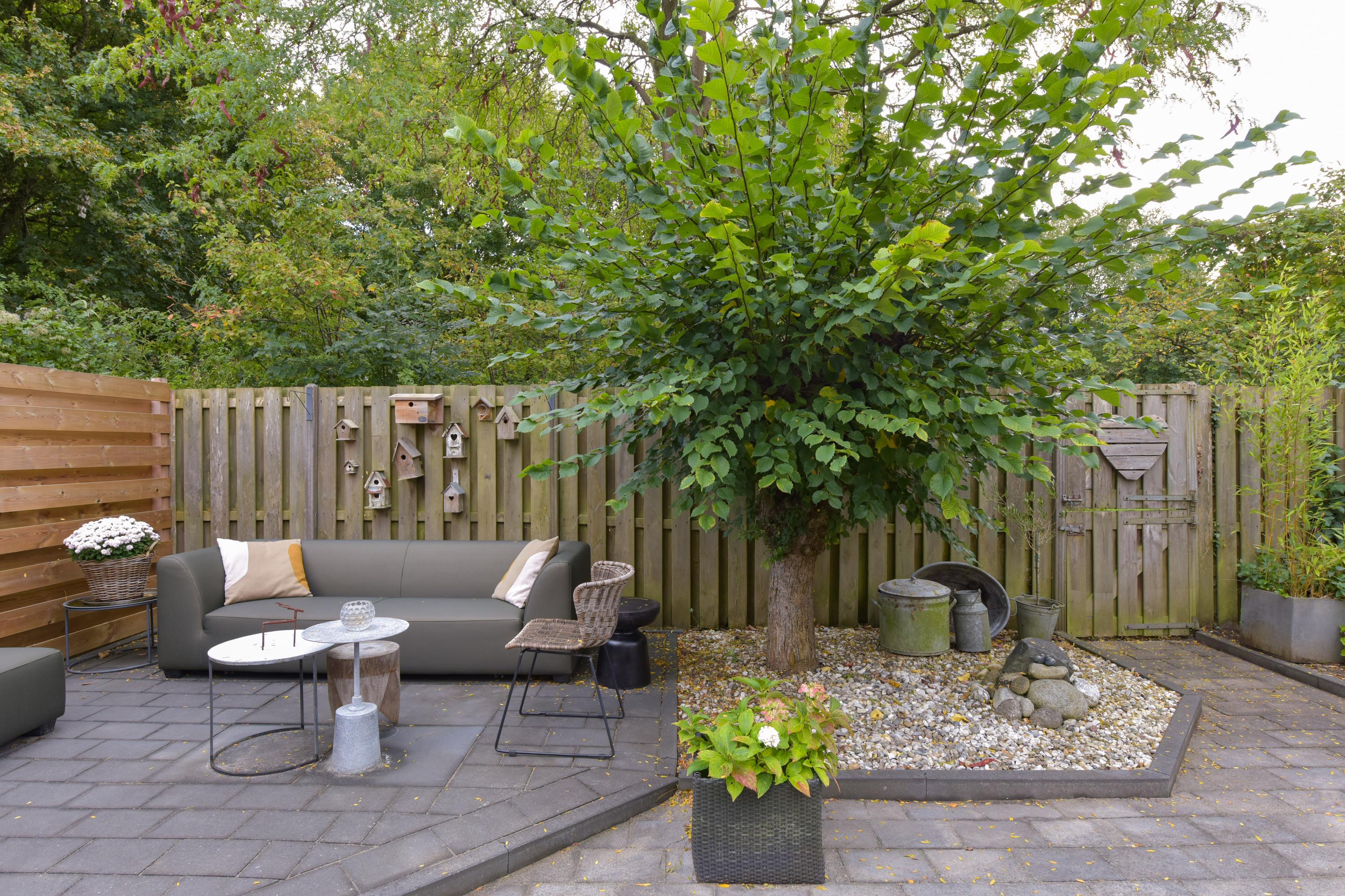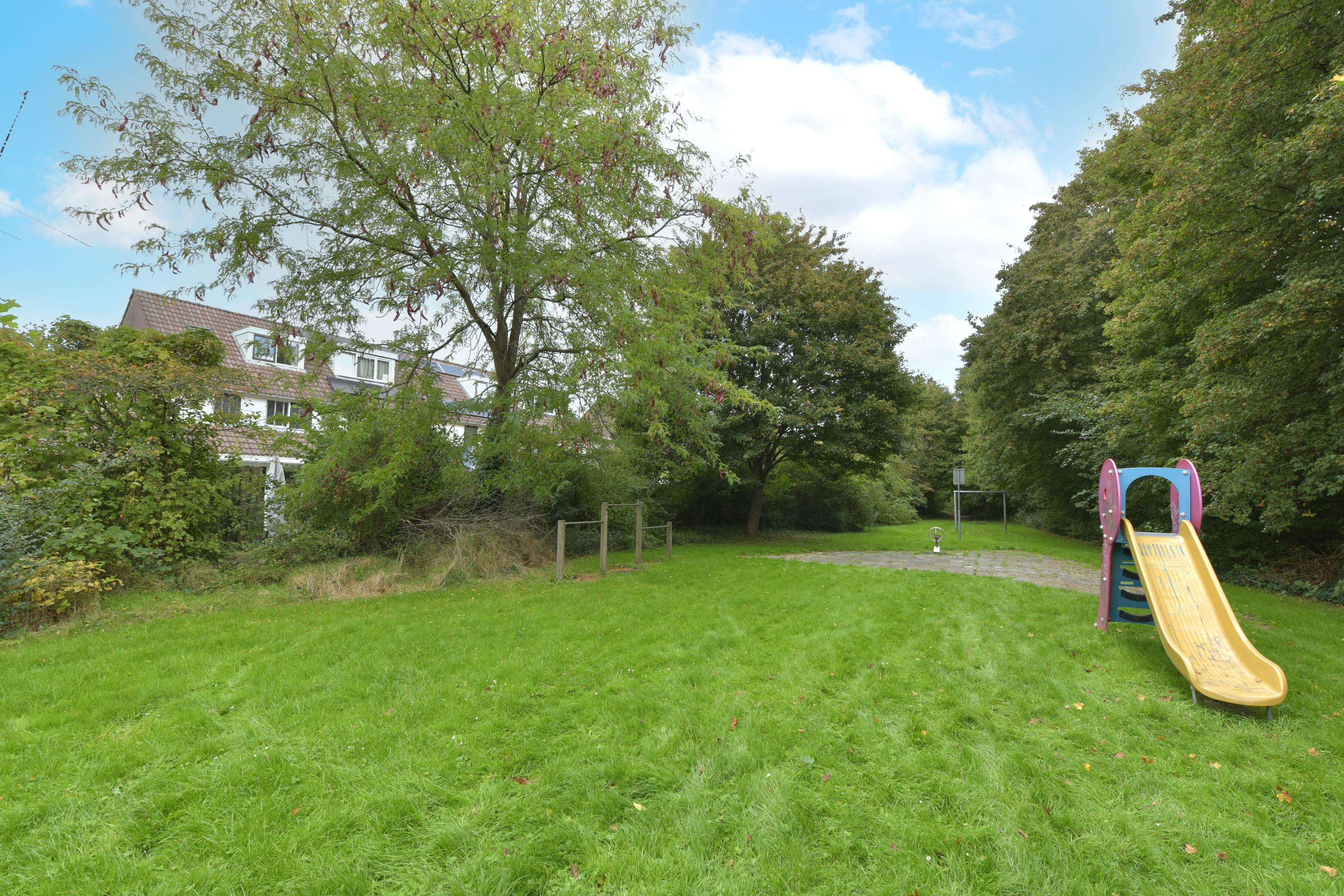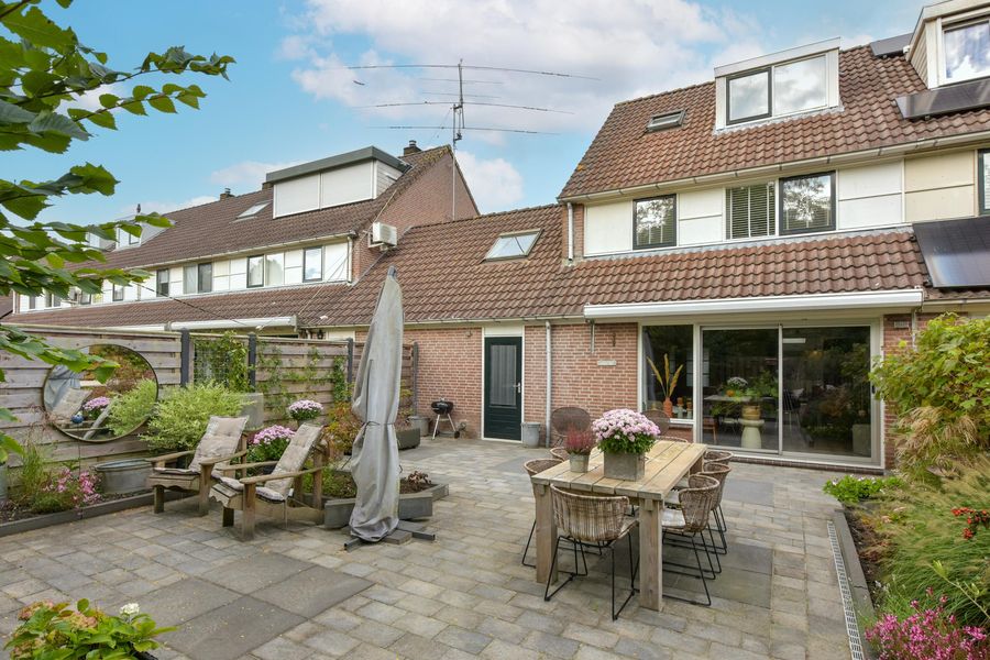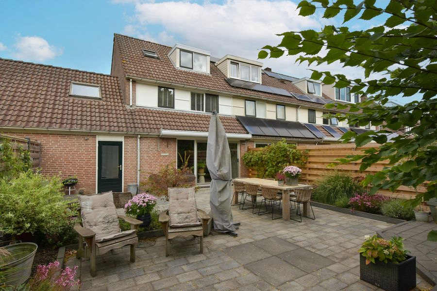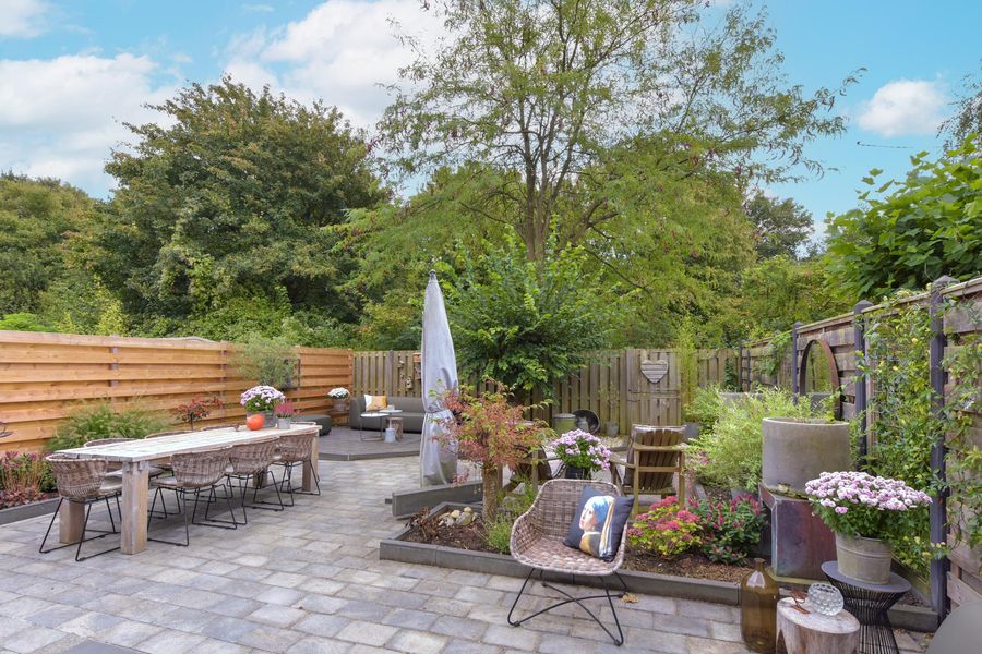 De tuin is werkelijk een parel: professioneel aangelegd (2022), zonnig gelegen op het zuidoosten en met meerdere fijne zitplekken tussen de beplanting. De achterzijde grenst aan een groen speelveldje, wat niet alleen een prettig uitzicht maar ook extra rust en privacy oplevert.
