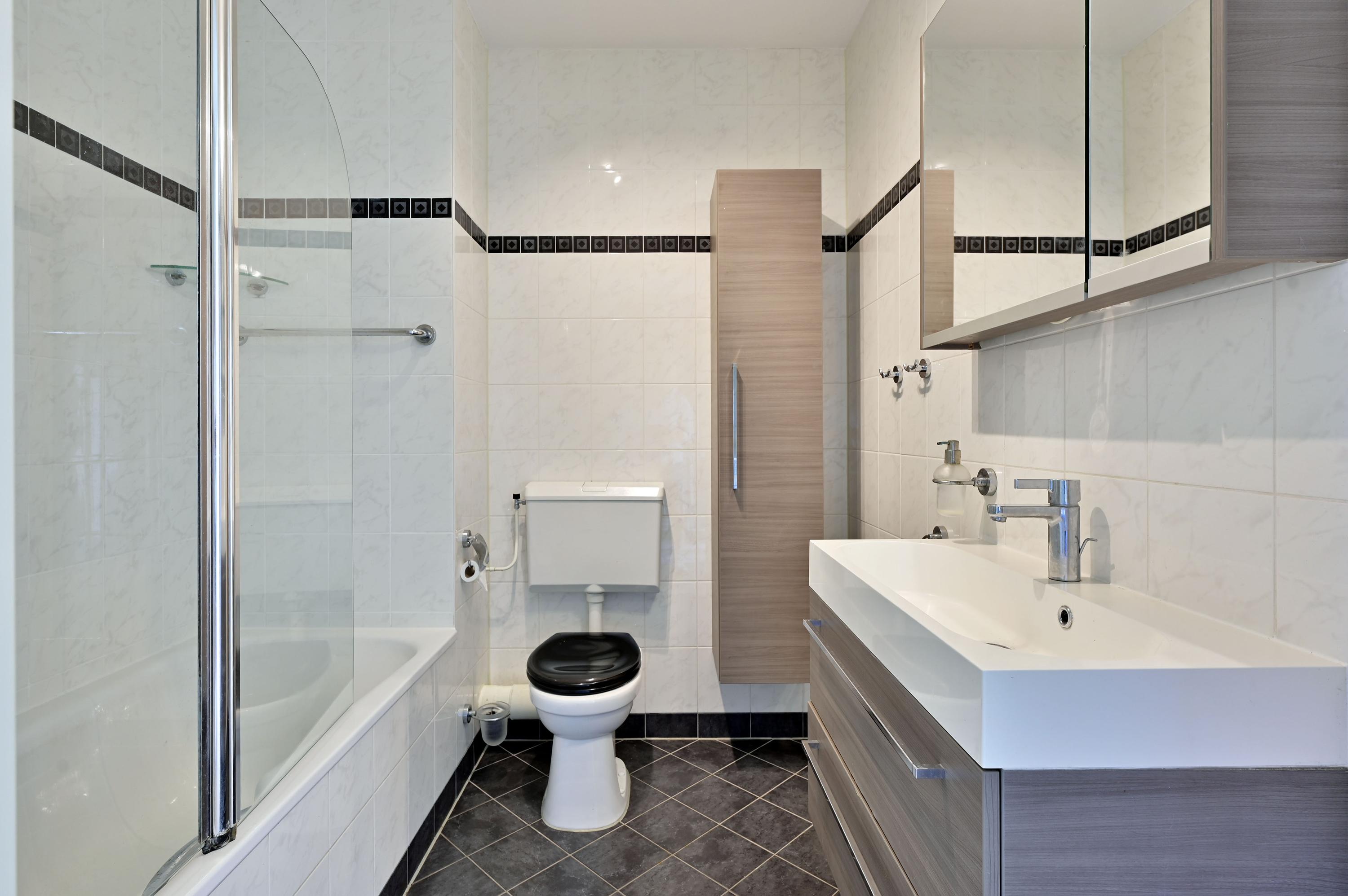 - Nette badkamer met ligbad, wastafelmeubel en toilet;