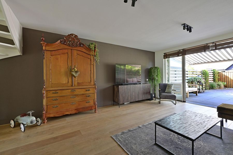 En dan de tuin: een heerlijk zonnige plek! Openslaande tuindeuren verbinden binnen moeiteloos met buiten. Het elektrisch zonnescherm zorgt voor de nodige schaduw op warme dagen. Dankzij de nette berging, een onderhoudsvrije aankleding én volop ruimte om te zitten, is dit zo’n tuin waar je echt van gaat genieten. Parkeren kan eventueel ook op eigen terrein.