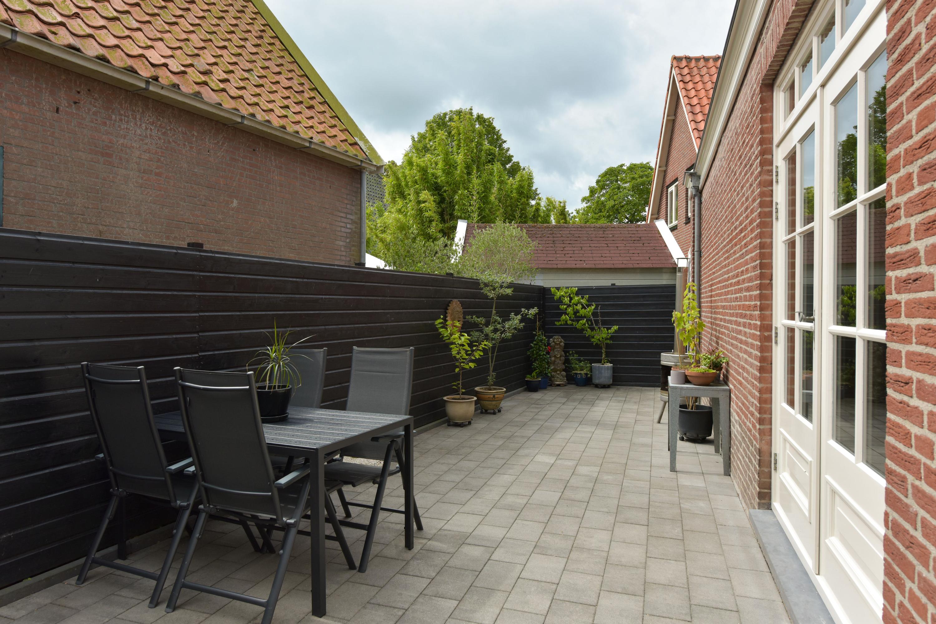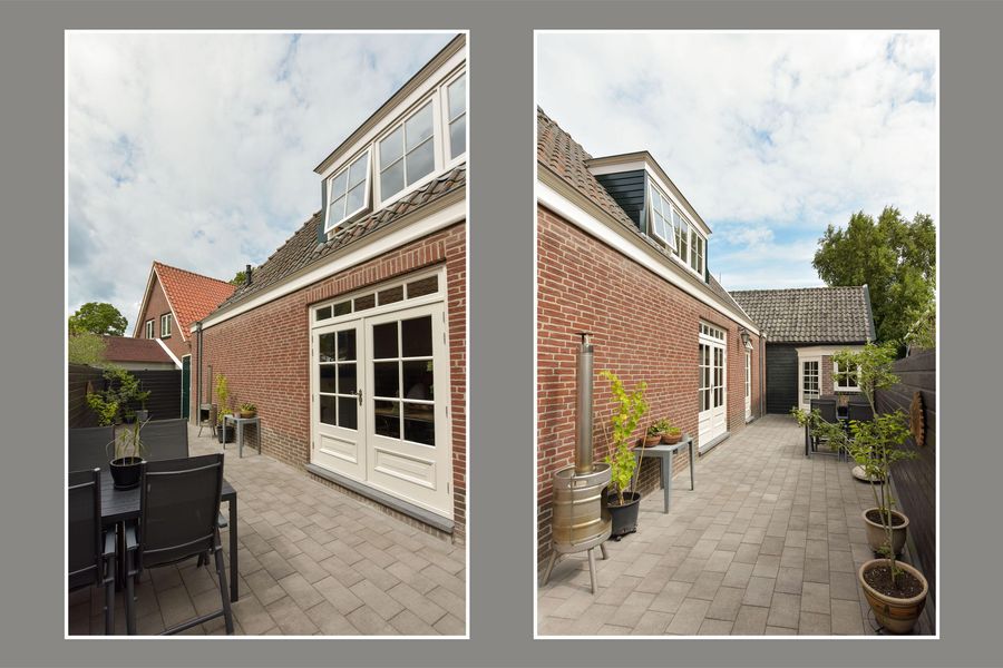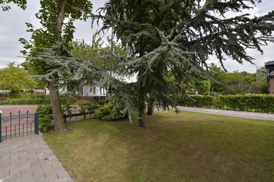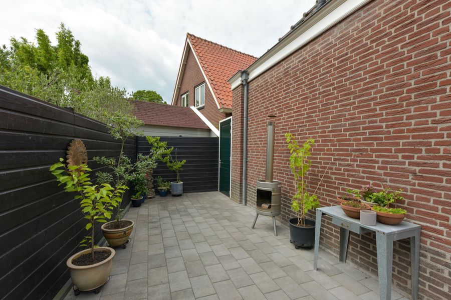 De tuin is al net zo sfeervol als de woning zelf. Aan de voorzijde ligt een groot gazon, mooie borders en bomen en een royale oprit. Achter vind je een knusse tuin met meerdere fijne zitplekken. De openslaande deuren vanuit de woonkamer versterken dat echte buitengevoel. En handig: een schuur voor al je tuinspullen!