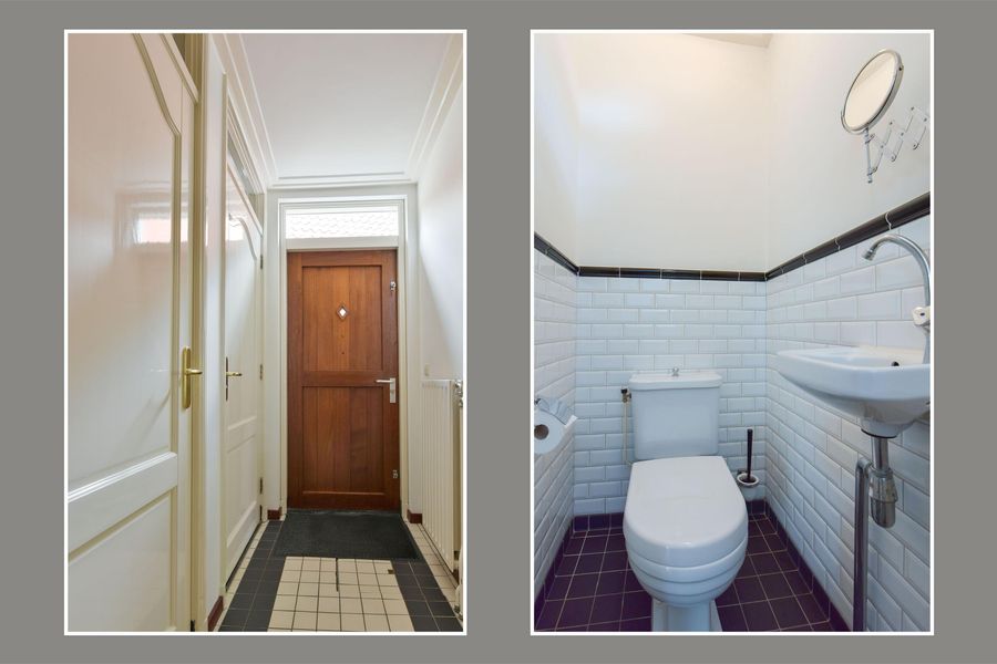- Zij-ingang met toilet en inbouwkast met de wasmachine en CV;
