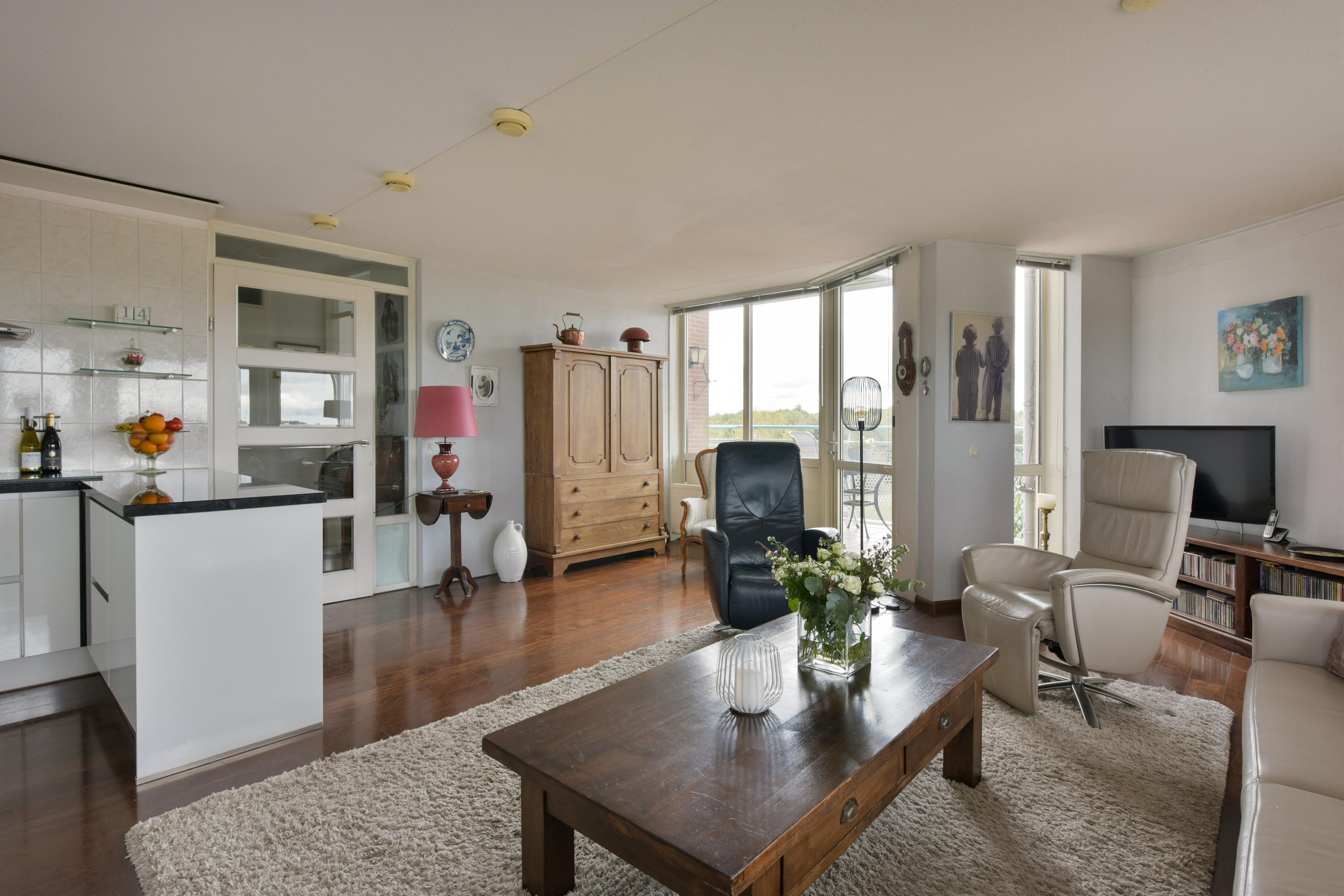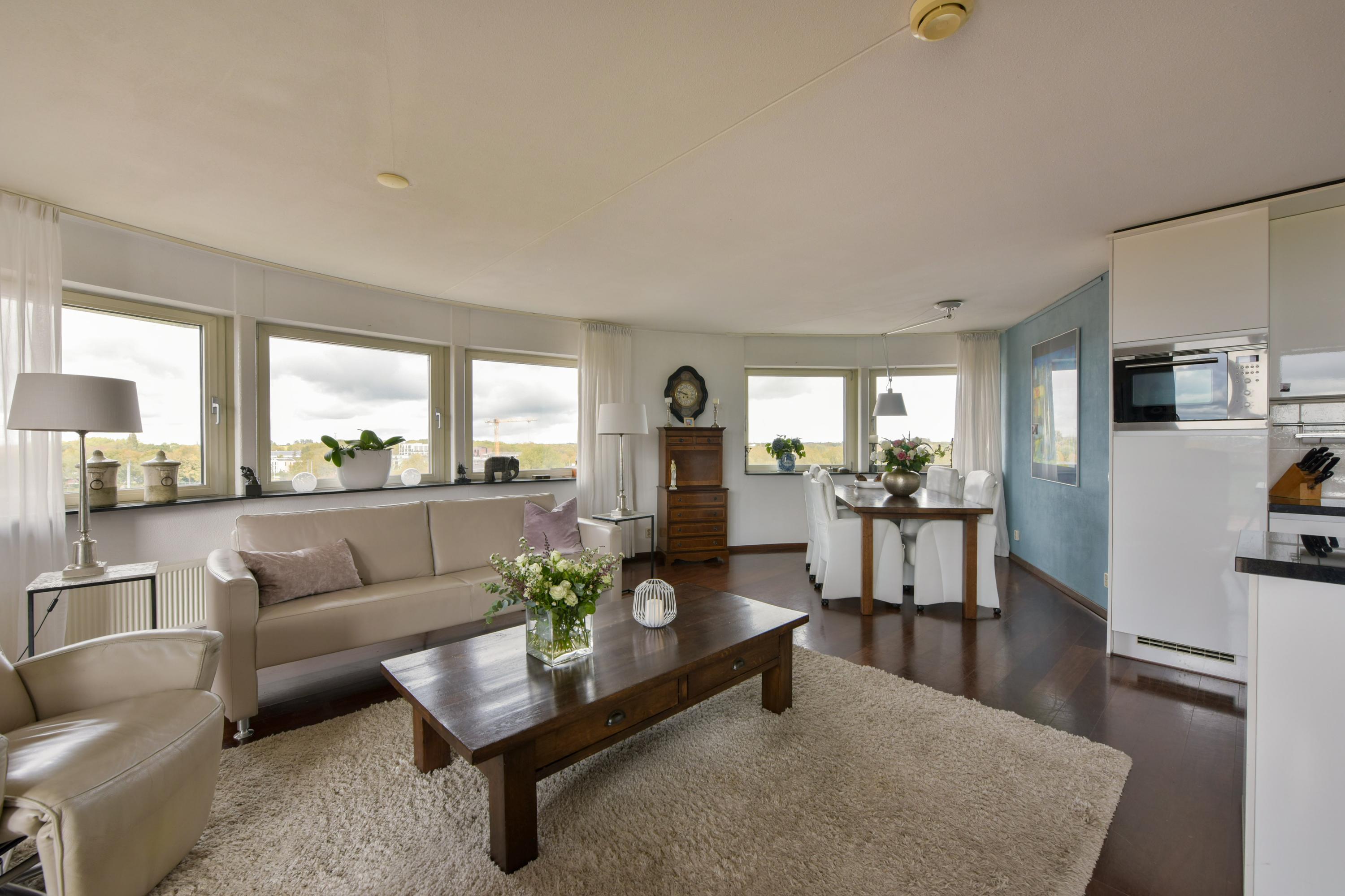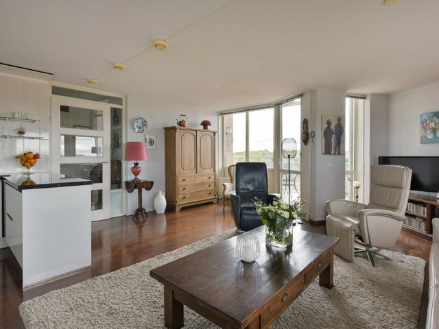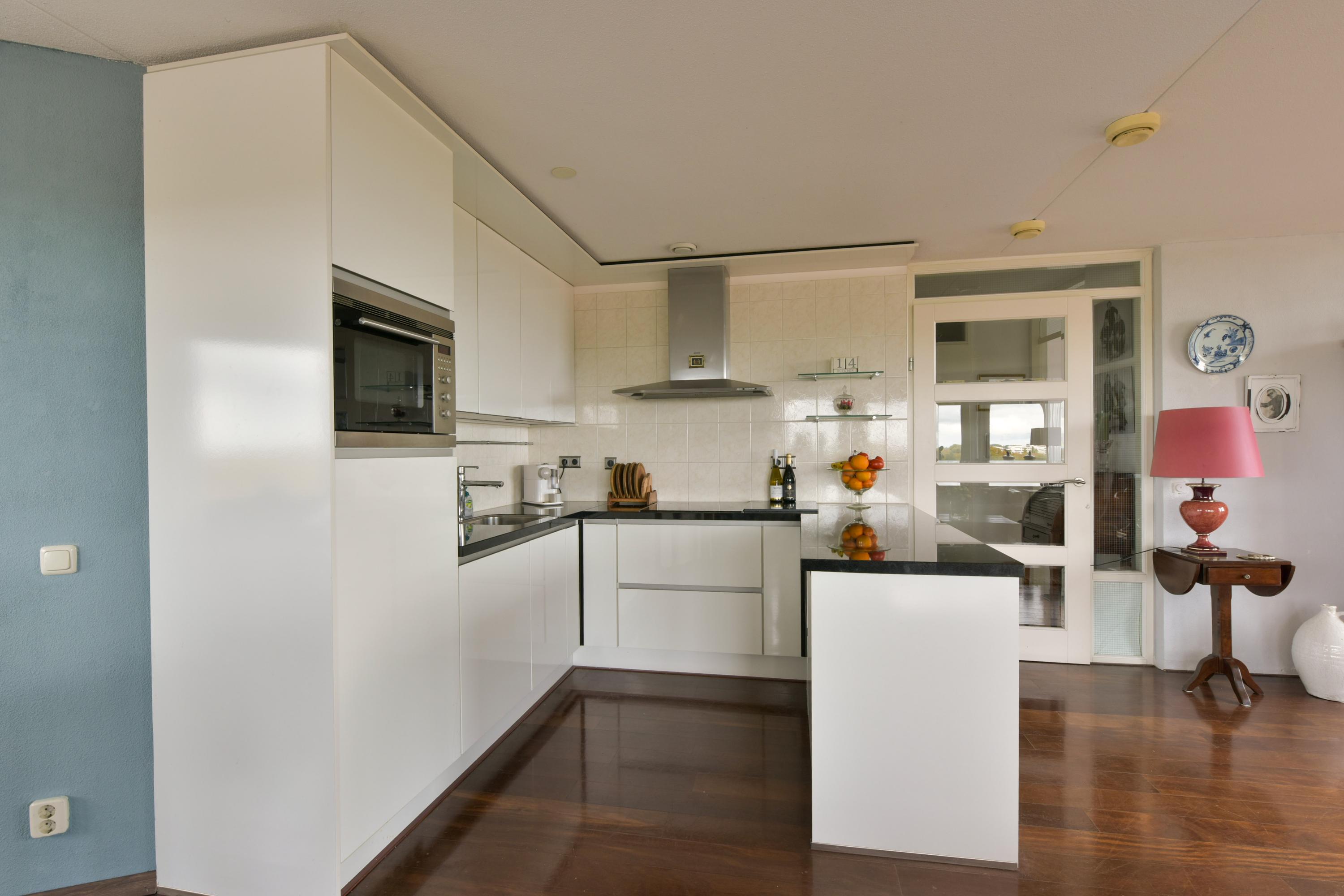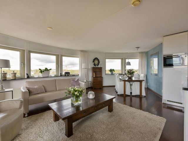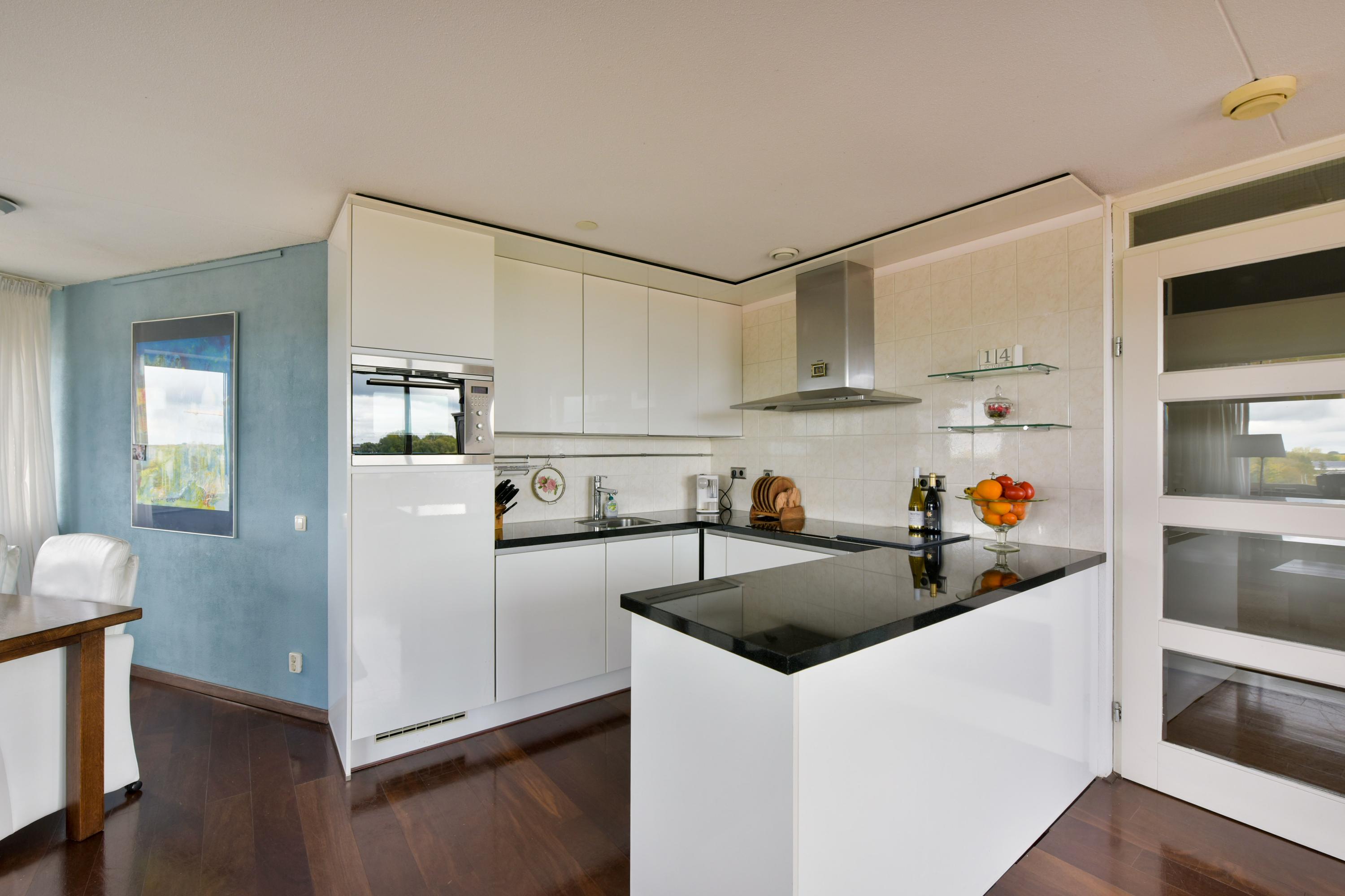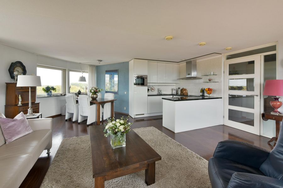 Zodra je binnenkomt, valt de ruimte en het licht je direct op. De woonkamer heeft een warme houten vloer en grote raampartijen waardoor je hier tot in de avond kunt genieten van het prachtige uitzicht. De moderne keuken in hoogglans wit met stijlvol zwart werkblad is helemaal van nu – ideaal voor wie van koken én design houdt. En met een balkon op het westen heb je tot ’s avonds laat de zon op je gezicht. Heerlijk!