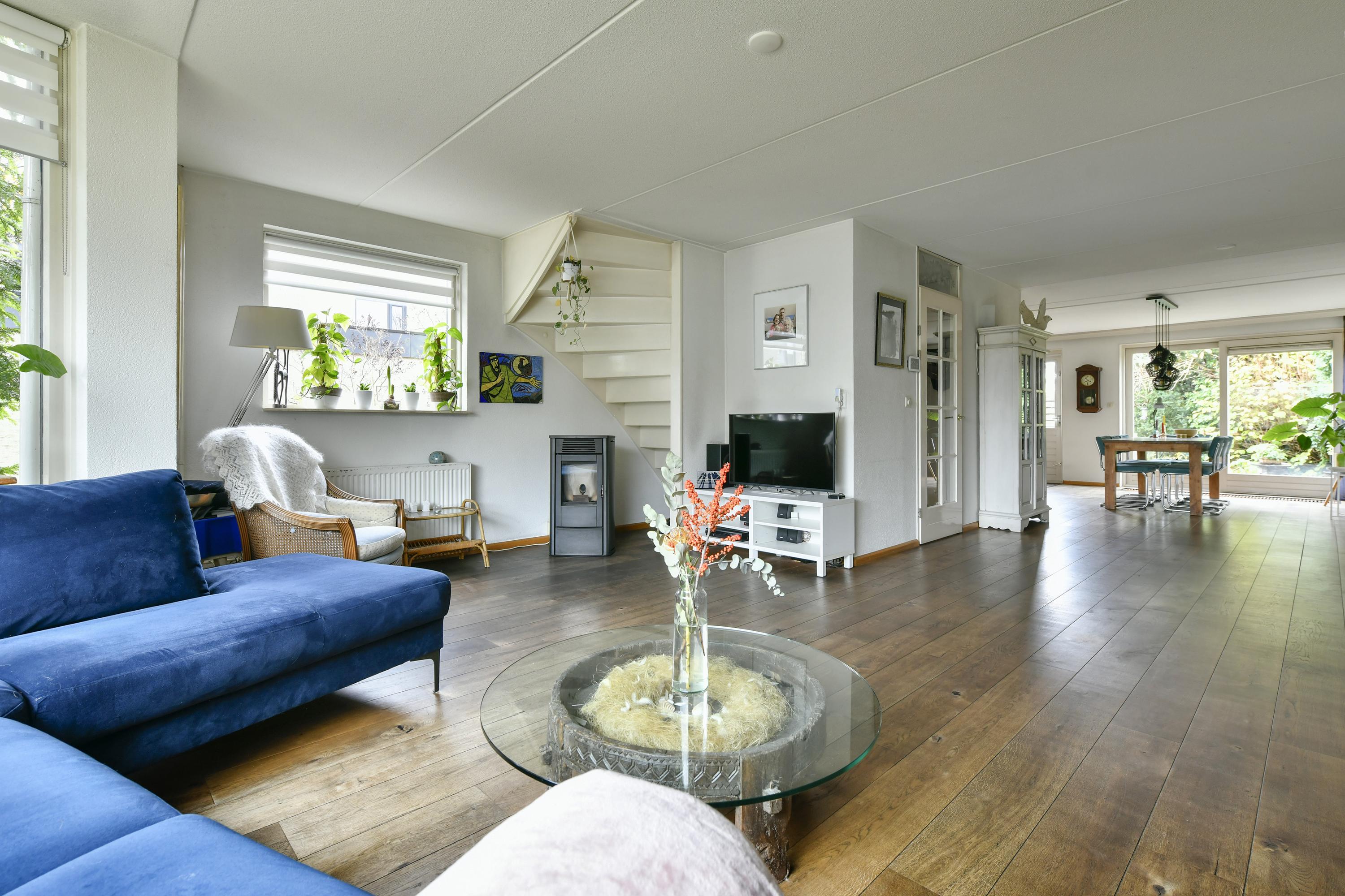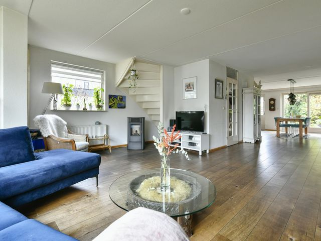 - Royale en lichte woonkamer met speelse indeling, massief houten vloer en gezellige pelletkachel;