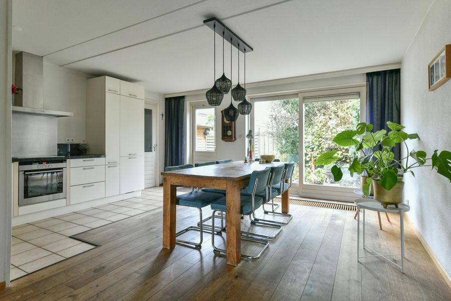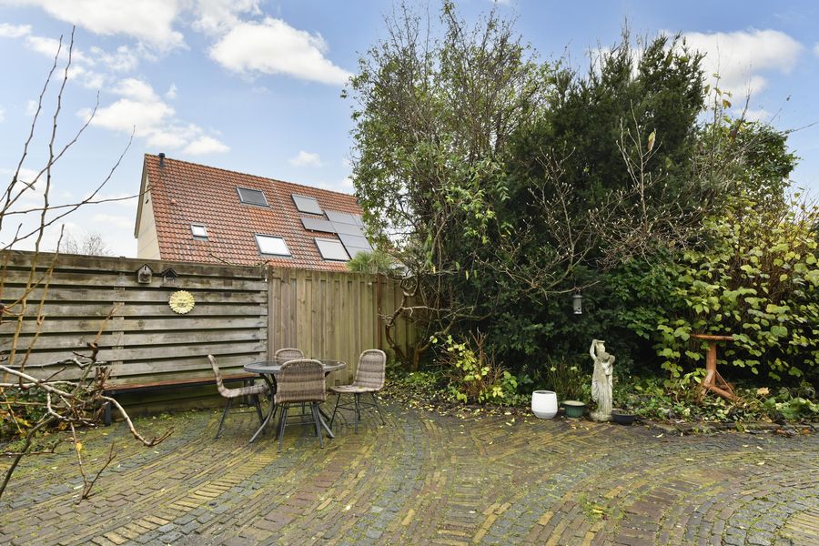 Er is veel groen in de omgeving, wat zorgt voor een ontspannen en prettige leefomgeving. Vanuit de woning heb je vrij uitzicht, wat direct een gevoel van rust en ruimte geeft. De tuin is verzorgd, beschikt over fijne zithoekjes én een achterom met houten berging.