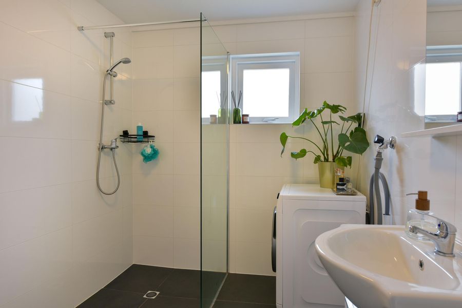 De eerste verdieping telt drie slaapkamers en een moderne badkamer met inloopdouche, toilet, wastafelmeubel en wasmachineaansluiting. Op de tweede verdieping wacht een royale vierde kamer met dakramen.