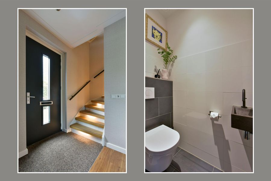 - Luxe hal met wandcloset, fontein en fraai tegelwerk;