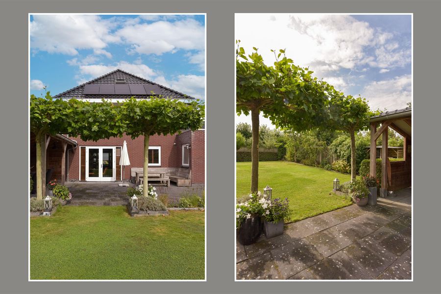 En dan die tuin… Wat een plaatje. Groen, verzorgd, zonovergoten en royaal. Een groot gazon, prachtige borders en bomen, een heerlijk terras én een royale veranda van 21 m² maken dit een tuin om in te leven. Alles is tot in de puntjes verzorgd.