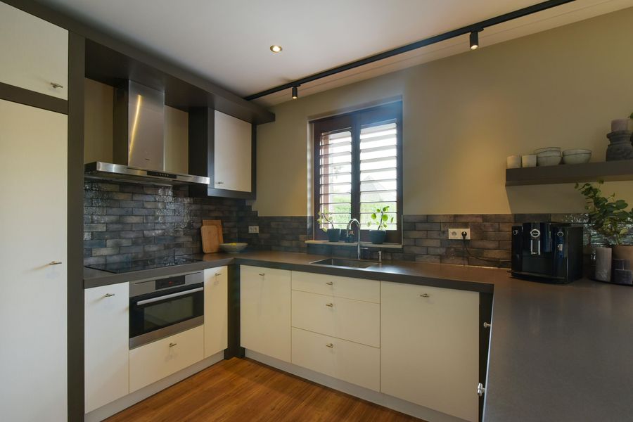 De woonkeuken is een echte eyecatcher. Groot, open en perfect geschikt voor gezellige diners met vrienden of familie. Voorzien van een eiland met bar, veel kastruimte en natuurlijk topapparatuur: inductie, oven, magnetron, koelkast, vriezer, quooker en vaatwasser. Via openslaande deuren stap je zo het terras op, heerlijk èn praktisch in de zomer!