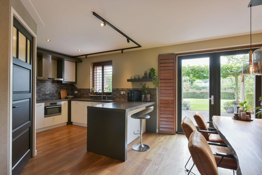 - Grote woonkeuken met openslaande tuindeuren, bar en inbouwapparatuur;
