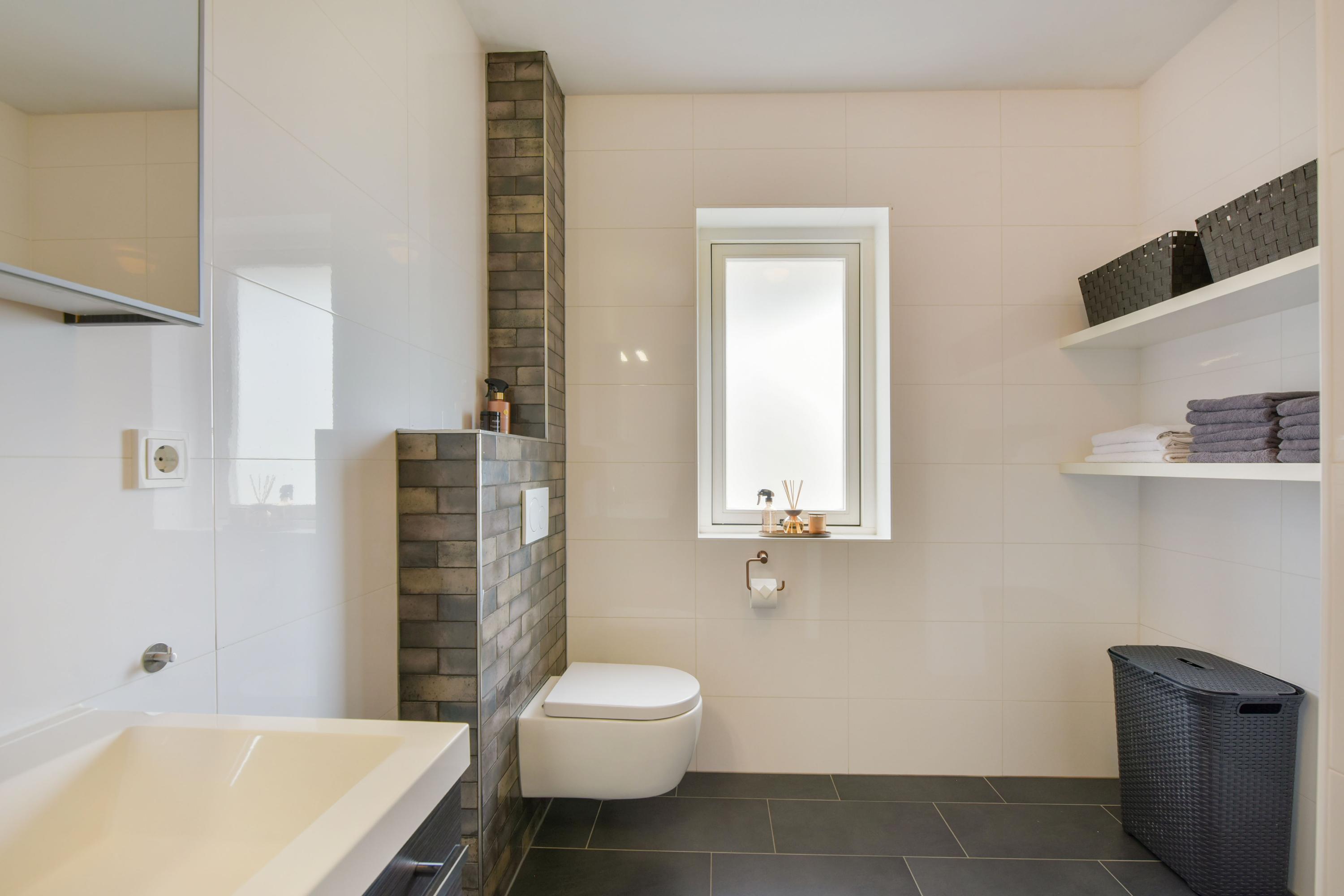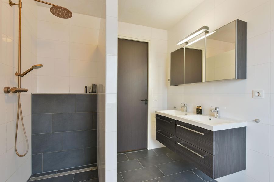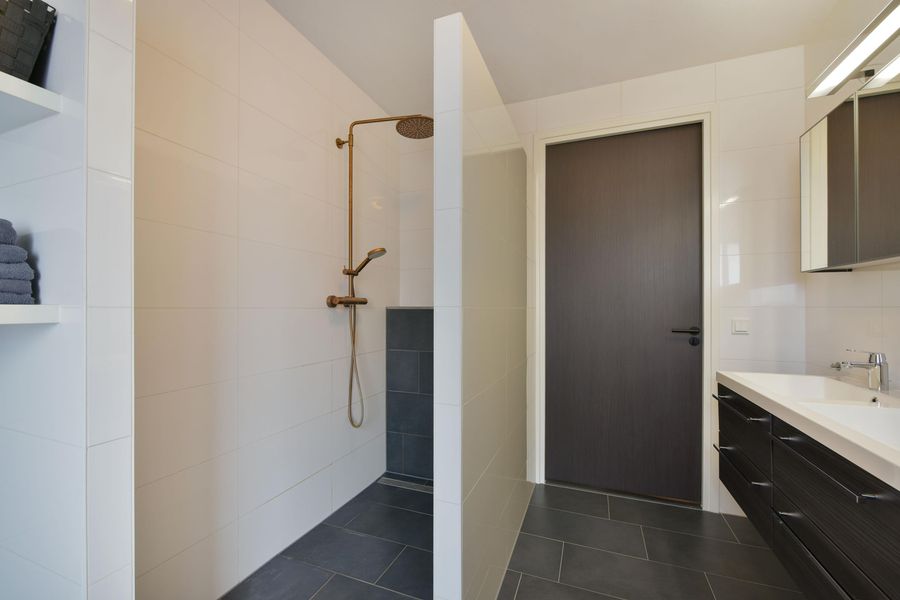 - Toilet, dubbele wastafel, inloopdouche en vloerverwarming