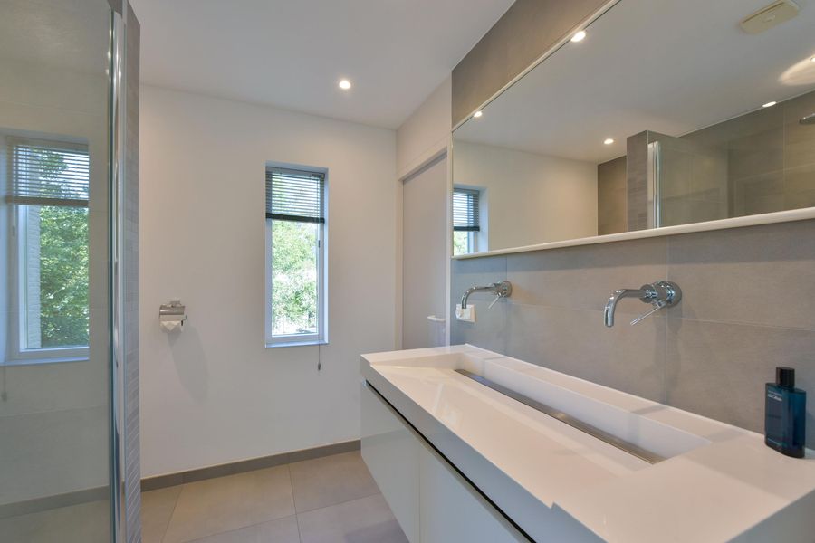 - Luxe badkamer met vloerverwarming, wandcloset, dubbele wastafel en inloopdouche;