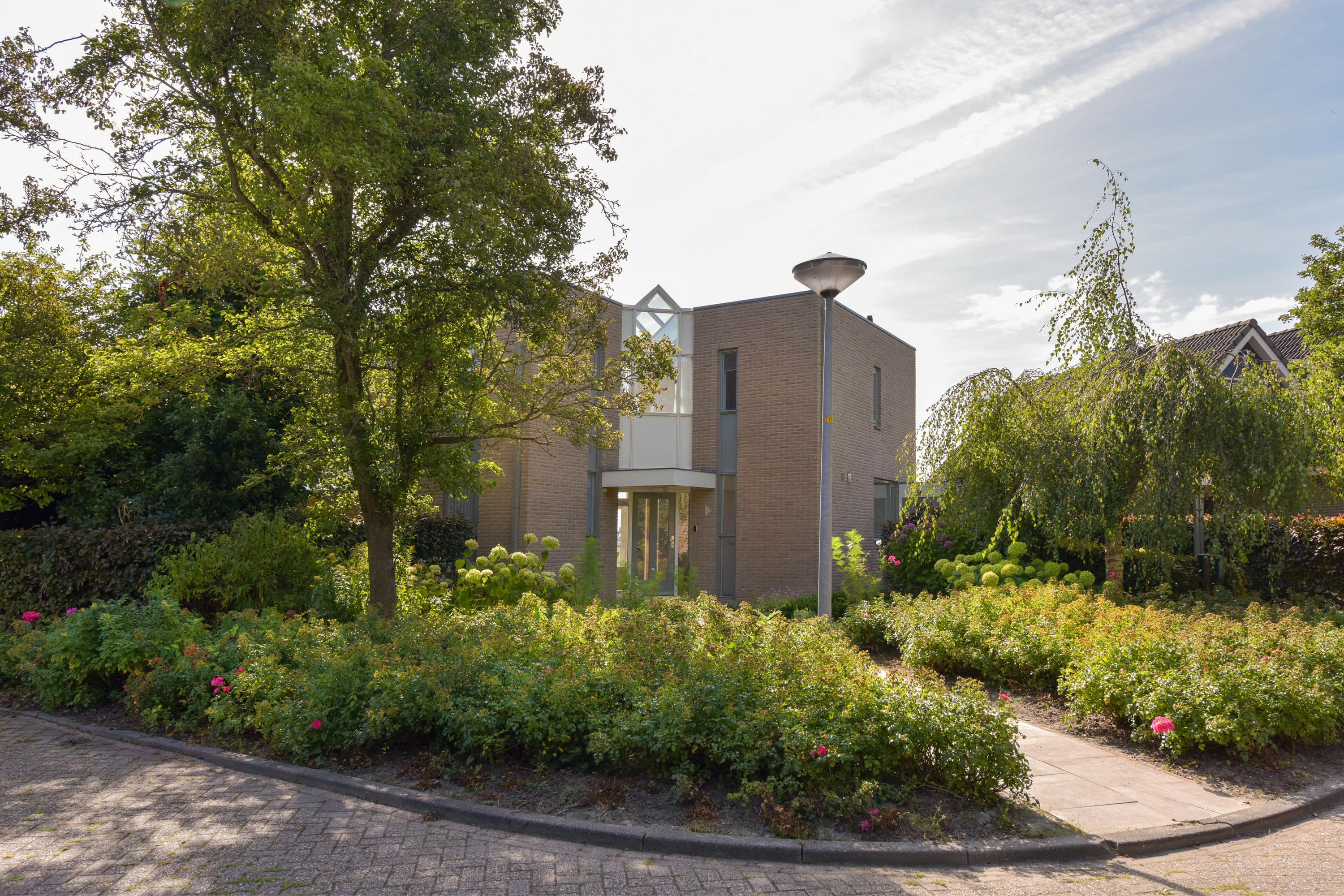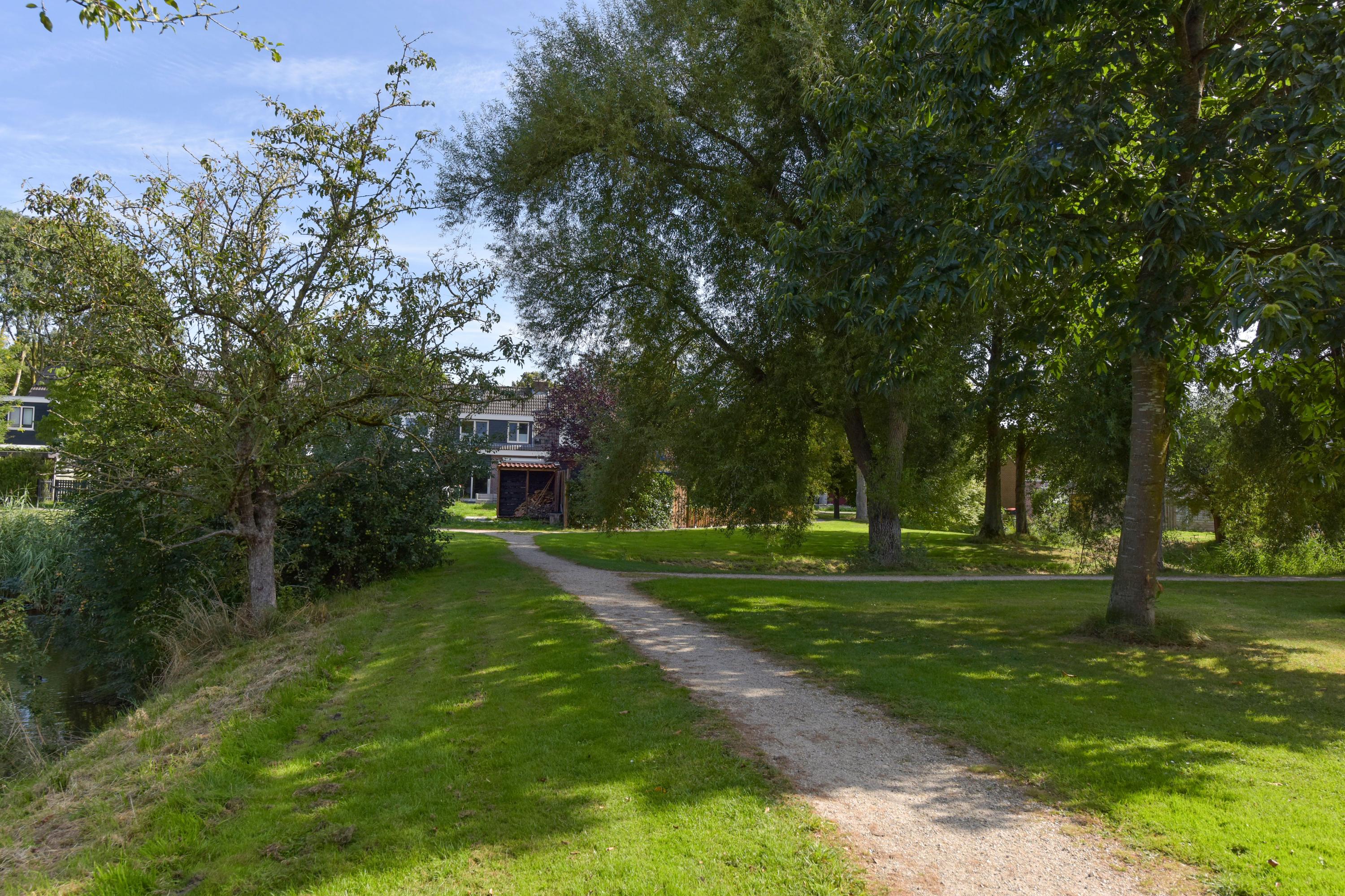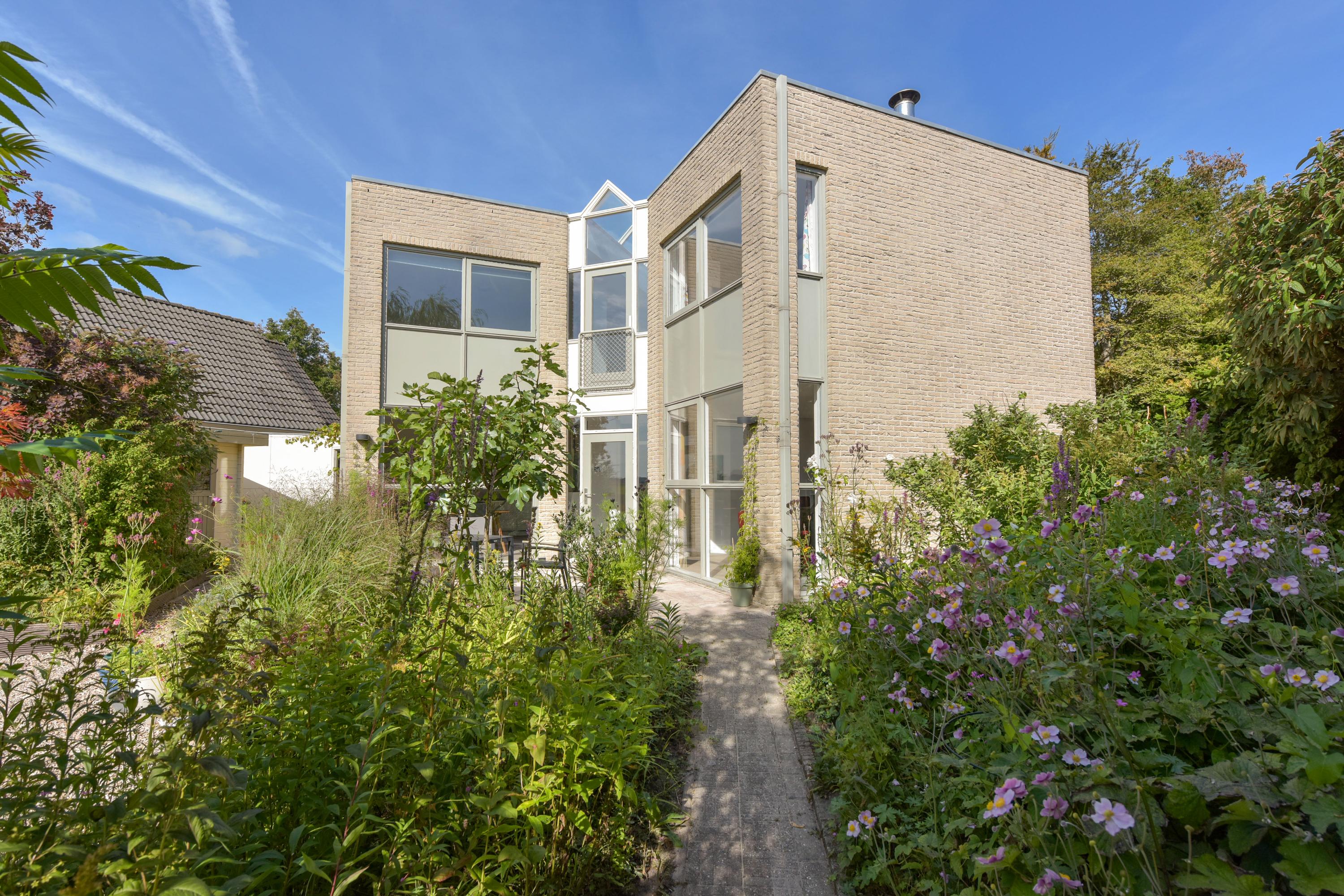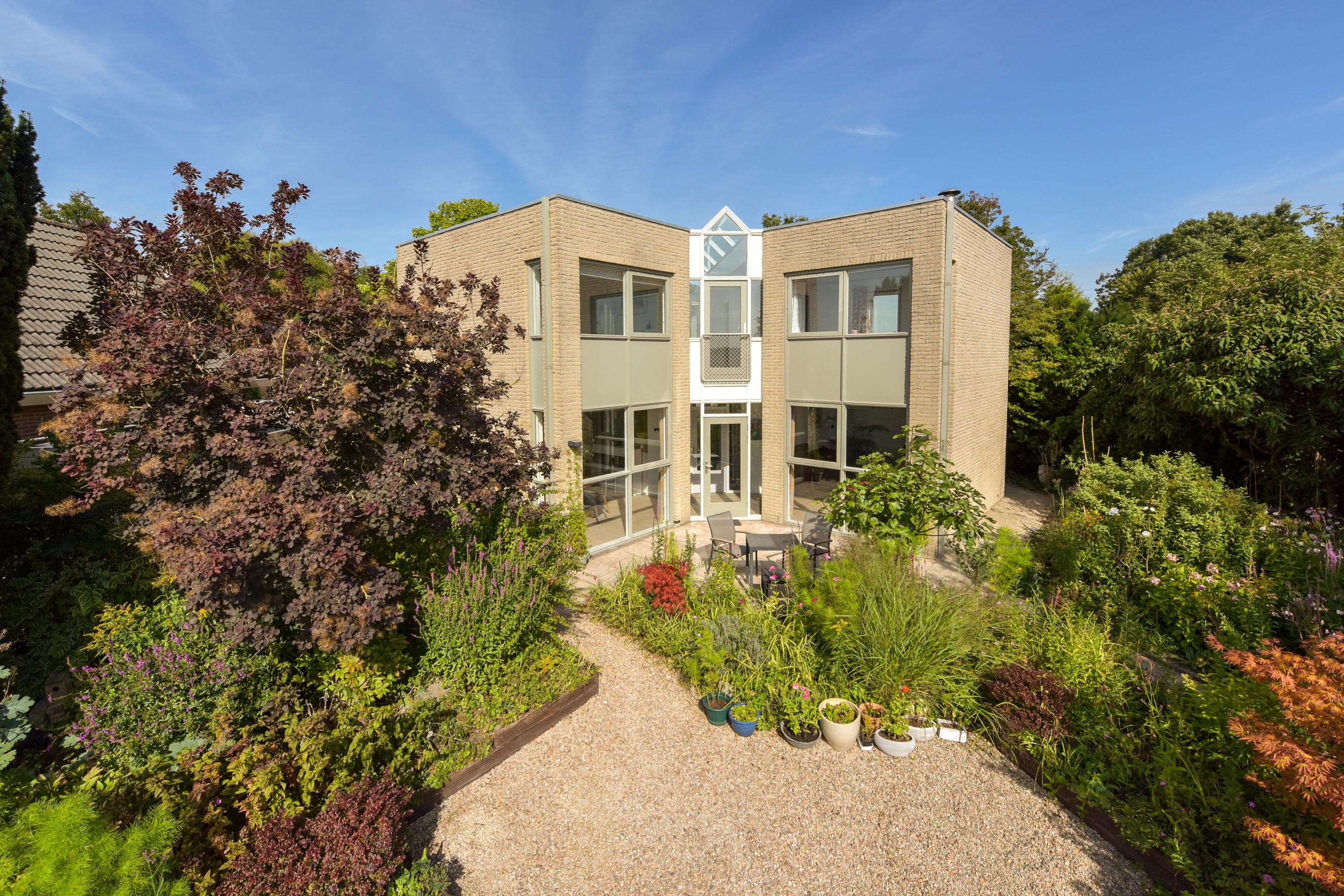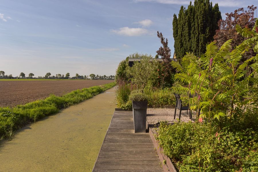 De tuin is prachtig aangelegd met verschillende terrassen gelegen in de zon maar ook in de schaduw. Het vrije uitzicht over de landerijen zorgen voor veel privacy en rust. Er is een extra houten vrijstaande berging voor al je tuingereedschap. Wel zo praktisch toch! Ook zo praktisch is de carport aan de zijkant van het huis. Door de enorme oprit kun je hier ook meerdere auto's parkeren. De omgeving is lekker rustig en groen (park op loopafstand), kortom heerlijk wonen dus!