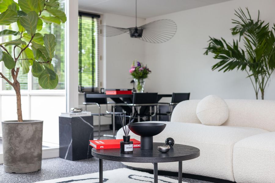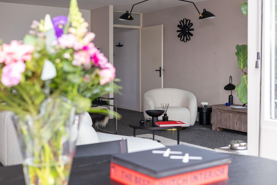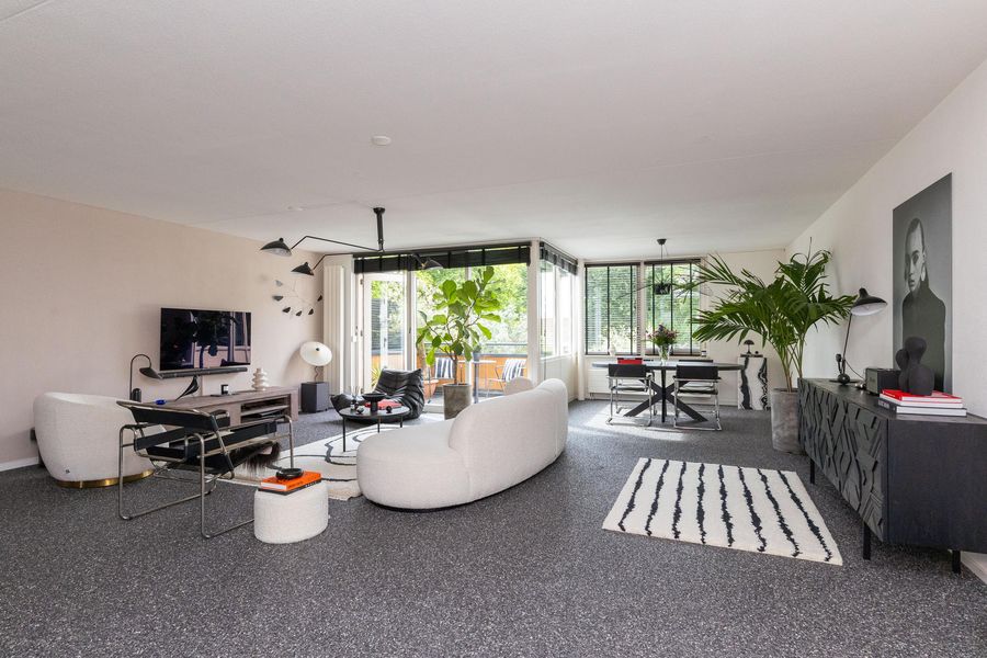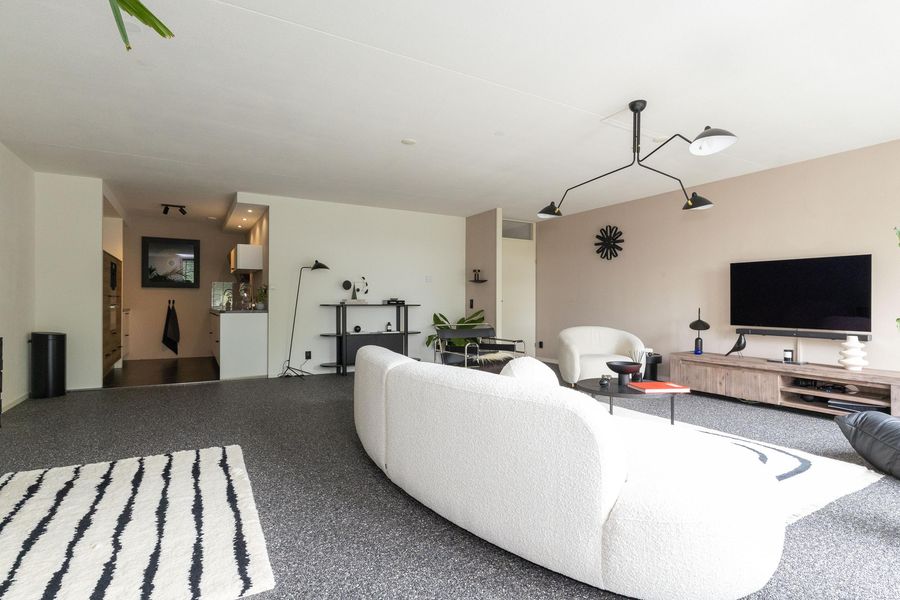 - Bovengemiddelde riante woonkamer met veel licht en vrij uitzicht over groen;