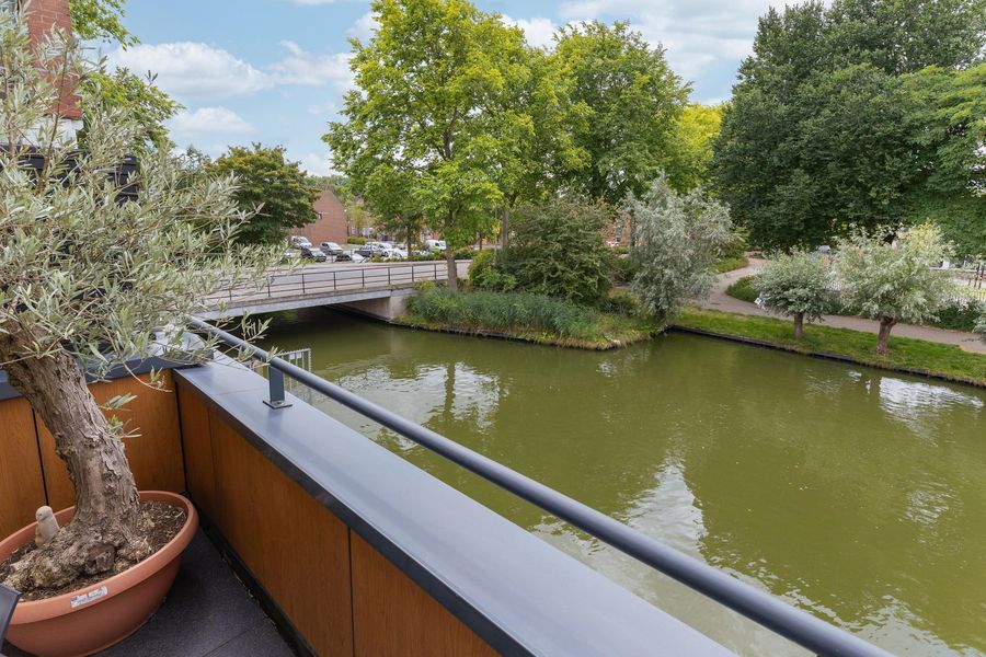 Het balkon is een absoluut pluspunt van dit leuke appartement. Hier zit je heerlijk op het westen, met uitzicht op het vaarwater en het gemeentegroen. Rust, privacy én zon in de middag en avond – dat is pas echt thuiskomen!