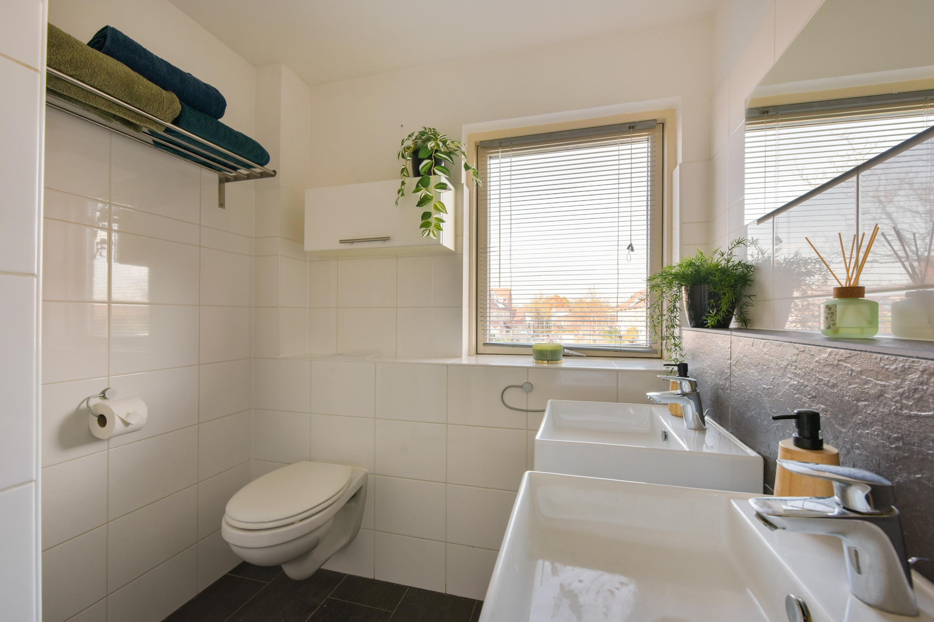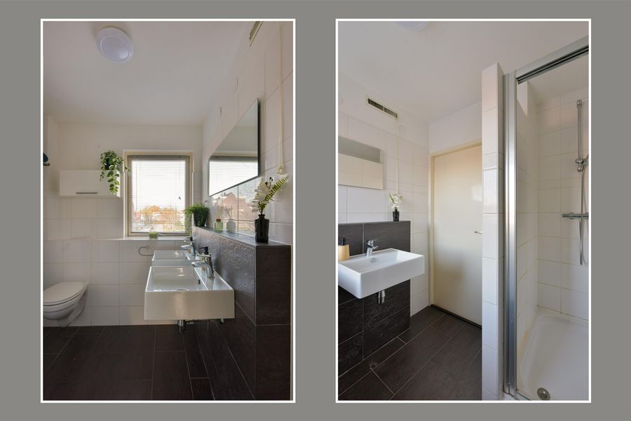- Toilet, dubbele wastafel en inloopdouche