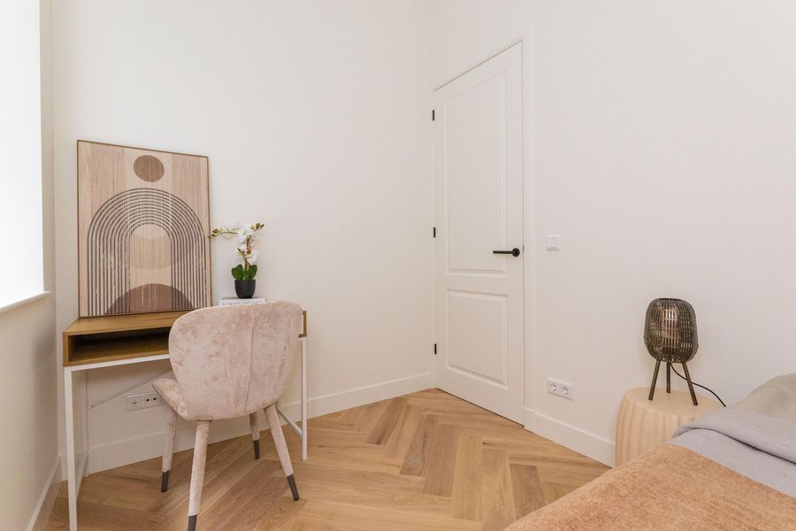 - karaktervolle visgraatvloer door het hele appartement met vloerverwarming;