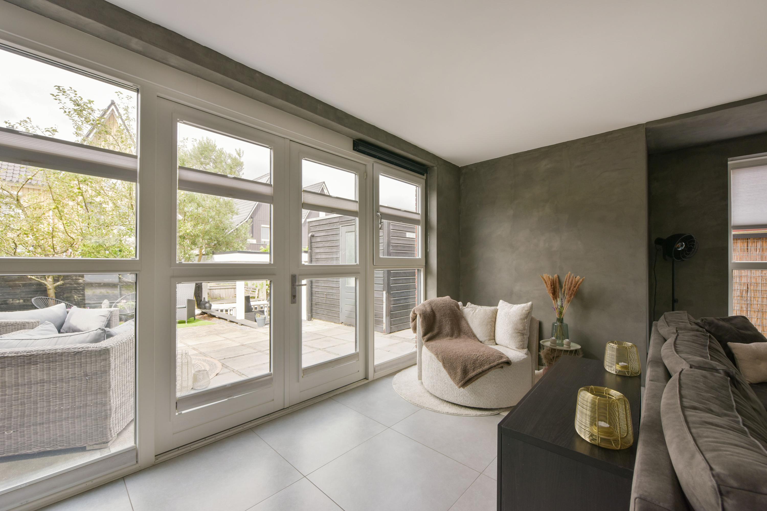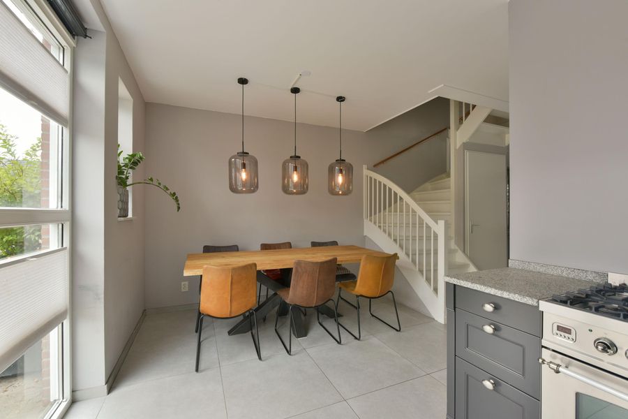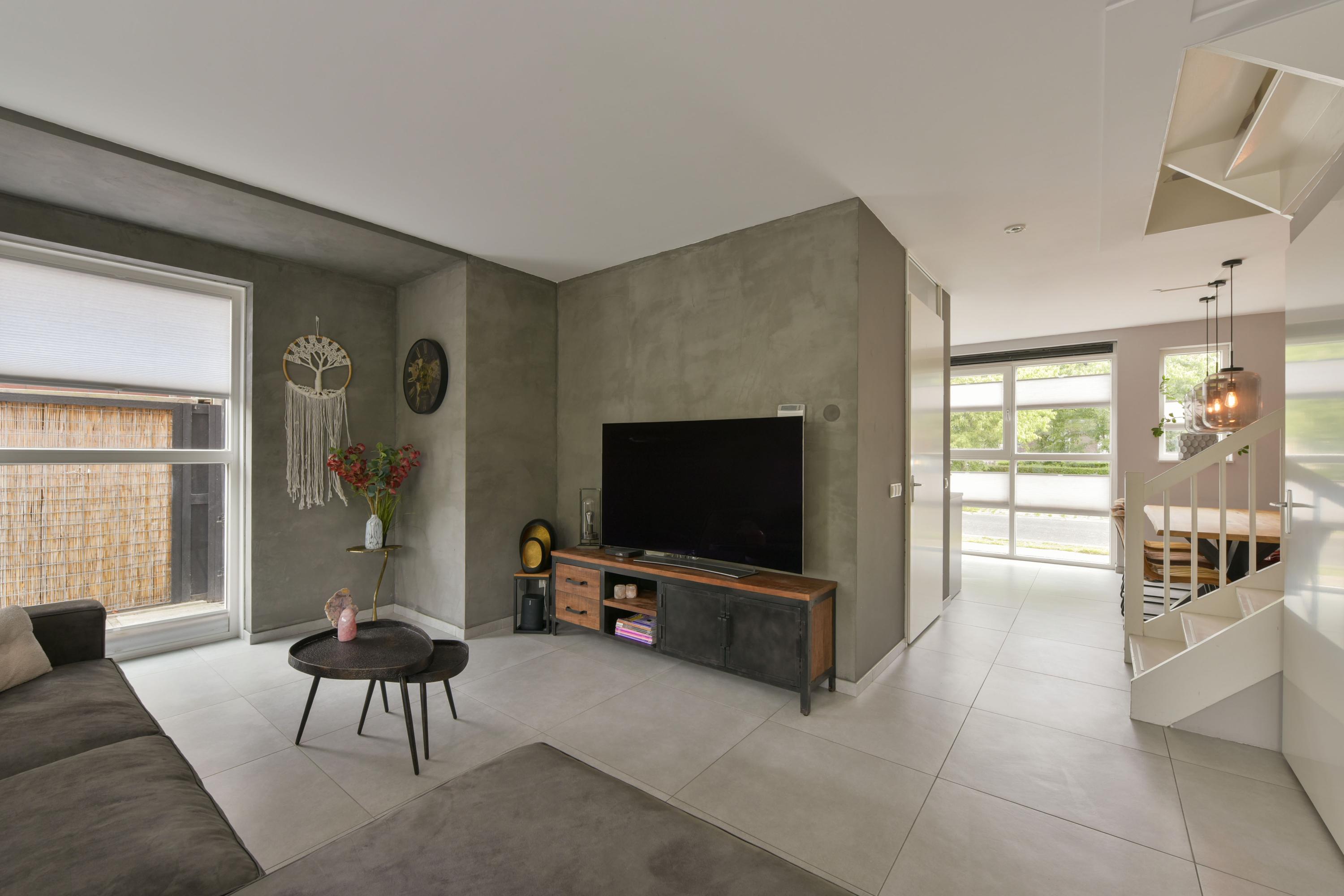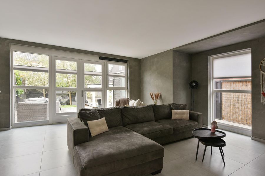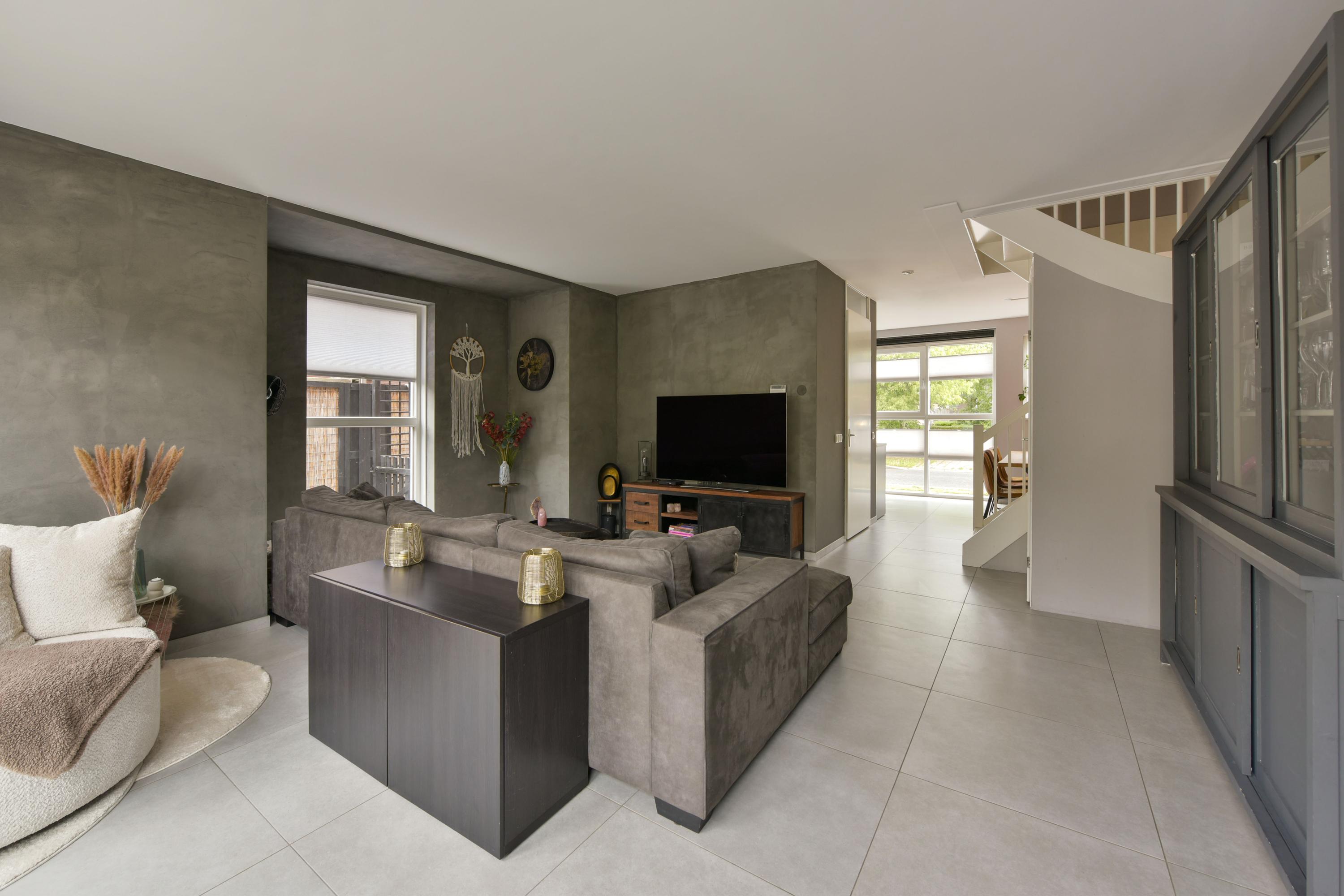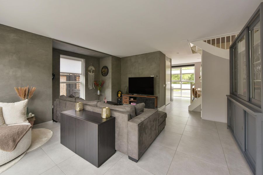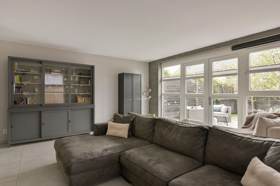 - Woonkamer met vloerverwarming, zijraam voor extra licht en handige trapkast;