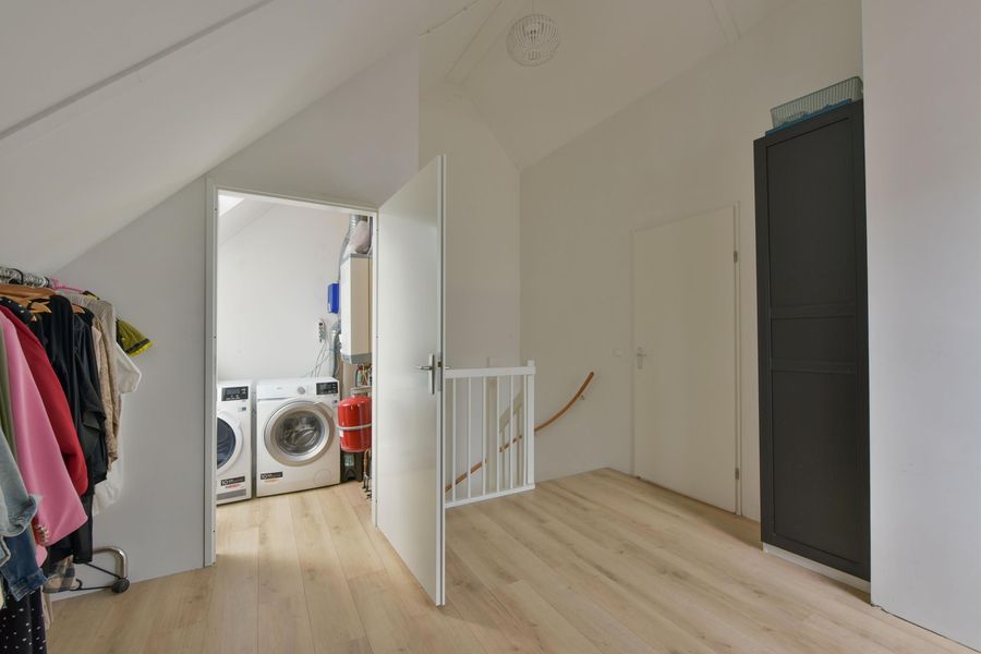 - Grote zolder met overloop, dakraam en aparte wasruimte met CV;